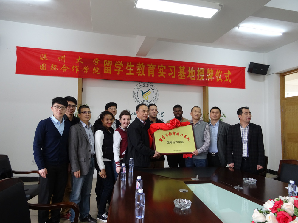 近日,国际合作学院留学生教学实习基地揭牌仪式在苍南宜山中学举行。det365官网党总支书记朱建平,副院长陈军,学生科、教学科、教研室有关人员和留学生代表参加了揭牌仪式。宜山高级中学校长何有田、书记陈步党、副校长黄振驾及部分教师参加了活动。