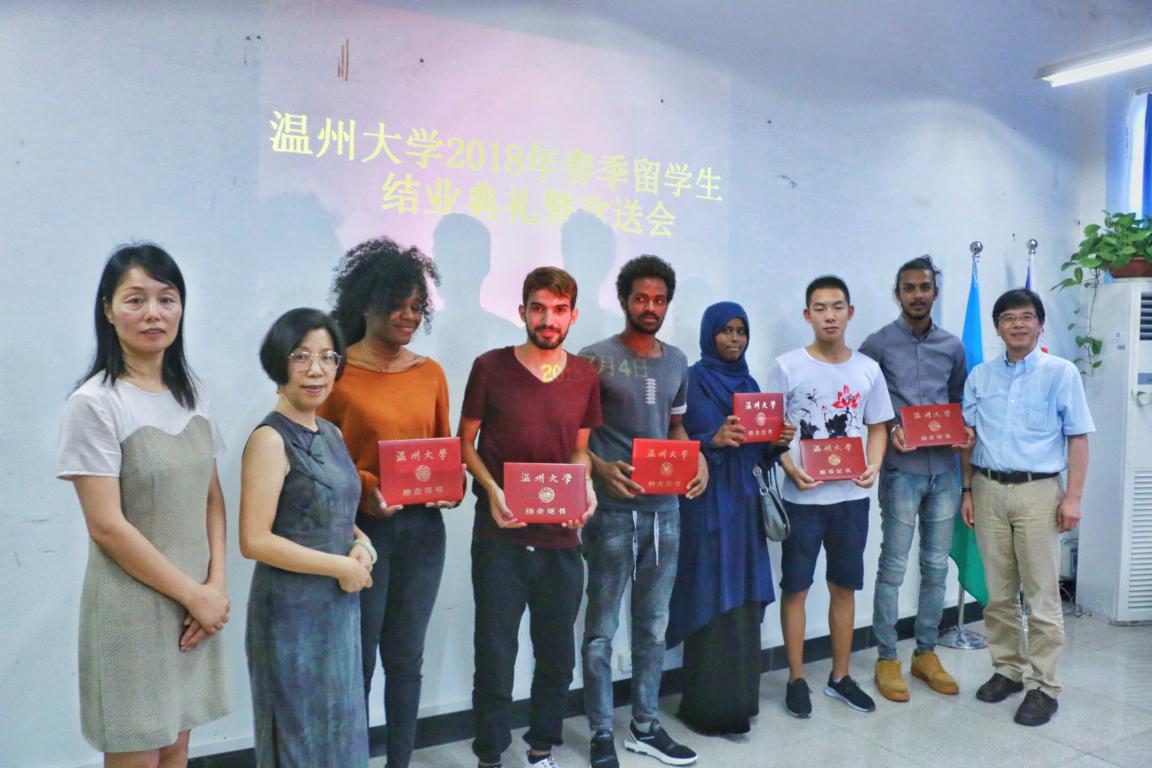 叶苗、陈军、陈文远分别为到场的33位结业学生颁发了结业证书和纪念品。叶苗分别为乌干达籍语言生MBAZIIRA HENRY、泰国籍语言生INTAVAREE MISS CHITCHANOK 颁发了校友联络员证书。最后,叶苗作总结讲话。她代表学院(留管部)对语言生顺利结业表示祝贺,并对他们所取得的进步表示肯定。她说,“在温大学习的每一天都会给你们留下了成长的印记,你们也给温大留下了深刻的印象。你们的名字将永远留在det365官网网站的校友名录中”。她指出,学习汉语给同学们赋予了外语的力量,有双语和多语能力的人比起单语的人更有优势,有更好的跨语言跨文化交际能力和更开阔的国际视野,同时,她希望同学们为自己所学的外语赋予更强的力量,做更多更有意义的事情,成为自己国家与中国文化交流的友好使者,为两国之间的经济、文化发展做出自己的贡献。最后,她表示,“det365官网网站欢迎你们常回来看看,det365官网网站是你们永远的家。”