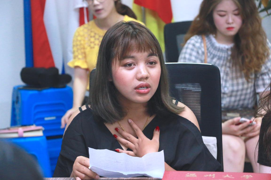 会上,教师代表金碧老师发言,她回顾了语言生们学习生活的点点滴滴,并对他们在汉语学习方面所取得的进步表示充分肯定。她希望他们回国后能继续学习汉语,遇到困难时可以和学院老师多多交流。来自泰国东方大学的交换生张小娴作为学生代表用中文发言。她说自己从小就对汉语学习非常感兴趣,但随着学习的深入,她发现汉语越来越难并一度有放弃的想法,幸运地是她获得了来det365官网网站学习汉语言的机会,并在这短短8个月里克服了汉语学习的恐惧心里。现在她已经能用中文自信、流畅地交流,她说,“我的成长离不开学院老师和同学对我的帮助,我很感谢det365官网网站,让我经历了终身难忘的留学生涯。”