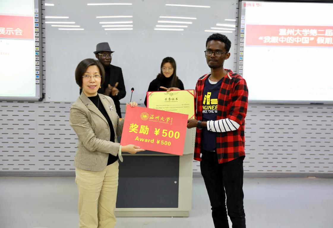 经过前期筛选,共有10件作品入围此次决赛角逐一、二、三等奖。展示会现场,国际学生一一上台,通过视频、图片、文字等方式展示假期见闻及他们眼中的中国,内容涉及中国的饮食、服饰、传统节日、风俗、语言文字、人文经济、新兴科技等方面。来自赞比亚的生物技术专业学生BANDA JOSHUA说,“能够跟随不同国家的学生看看他们眼中的中国,我觉得很有趣。在我看来,中国是一个值得其他国家尤其是发展中国家学习的‘老师’。中国不光在科学技术方面有所发展,在文化、自然环境方面的功课也没有落下。所以对我来说,中国在我的眼里是一个特别令人向往的地方。”计算机科学与技术专业的埃塞俄比亚籍学生TASSEW TEWODROS MEGABIAW提到,“这次作品展示会不仅给我们提供展示自我的机会,也让我们通过这种方式学到更多关于中国的知识,还能提高写作技巧和水平。在我看来,中国是一个美丽的国家,历史悠久。中国重视传统文化的传承和弘扬。今年寒假我回到埃塞俄比亚要继续社会实践工作,把我在中国学到的知识传播给更多的人。”