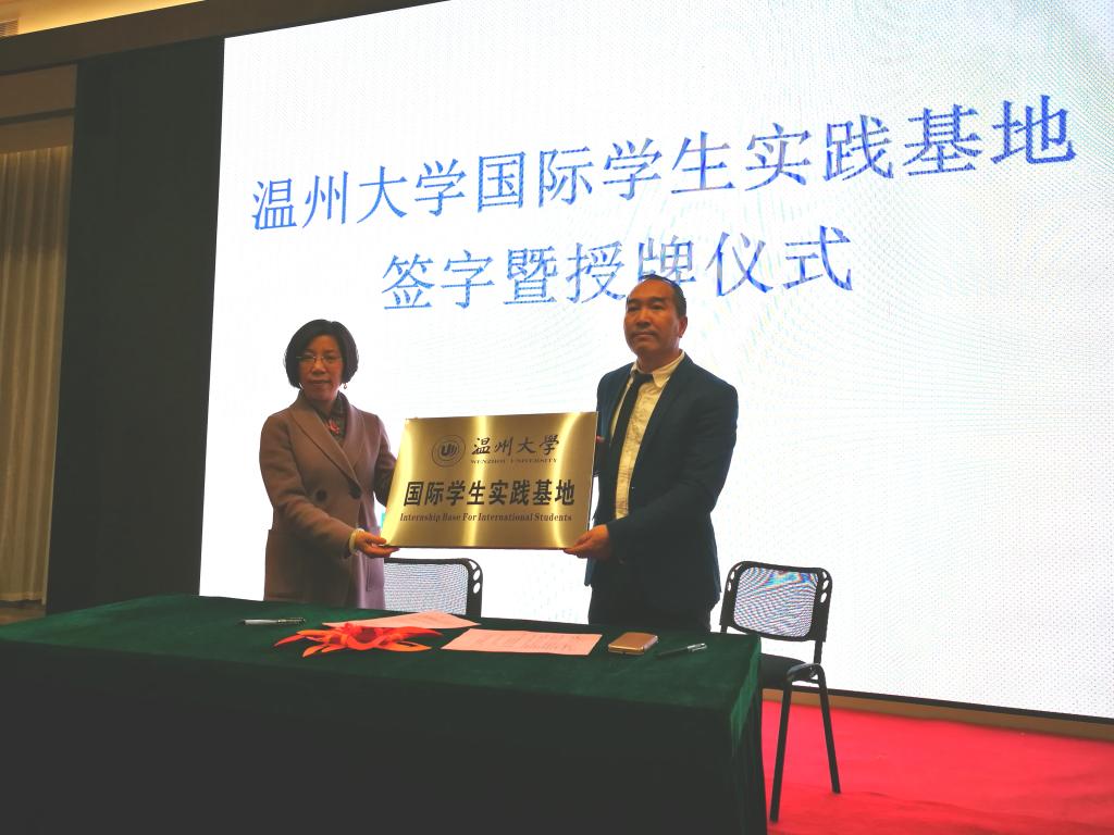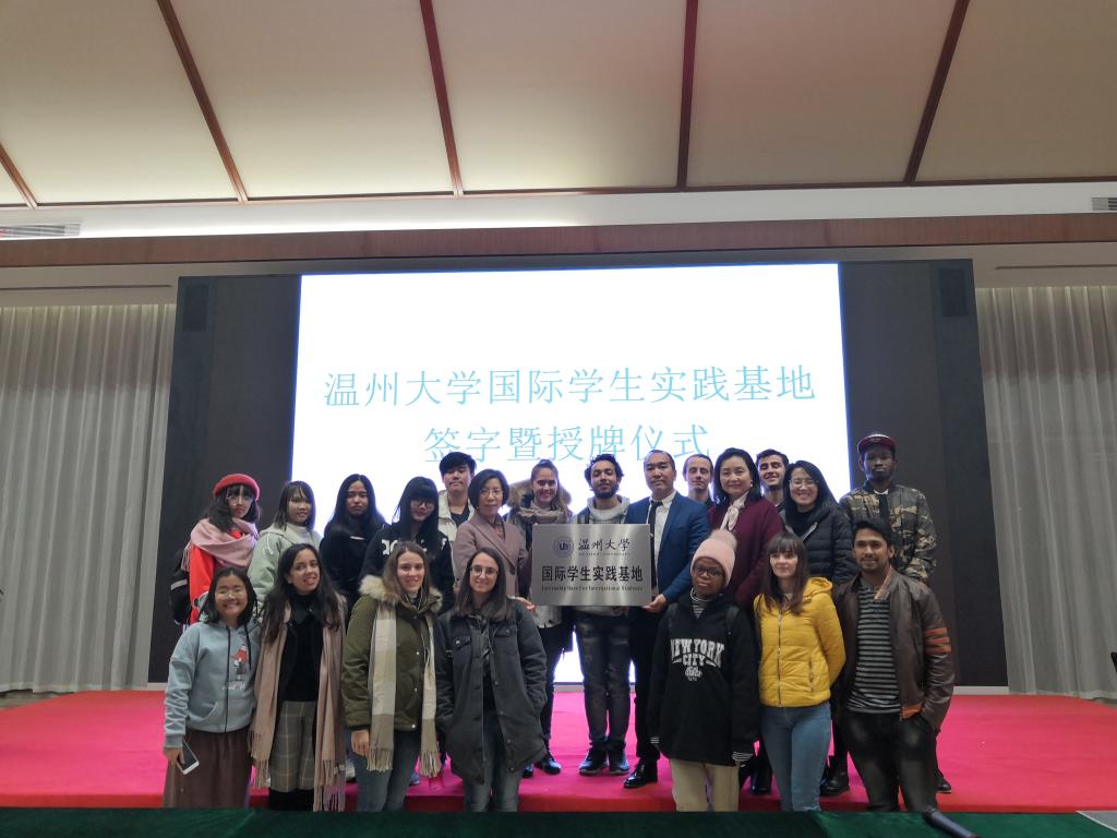 12月17日下午,det365官网国际学生实践基地签约暨授牌仪式在位于七都街道的温州市海外传播示范基地举行,海外传播示范基地负责人许鹏怀、det365官网网站院长叶苗、教研室张丽丽老师及20多名国际学生参与此次活动。