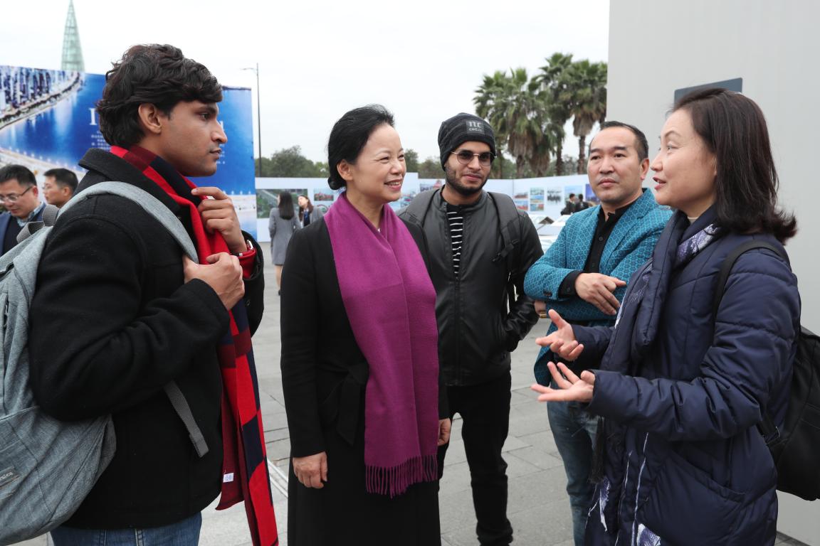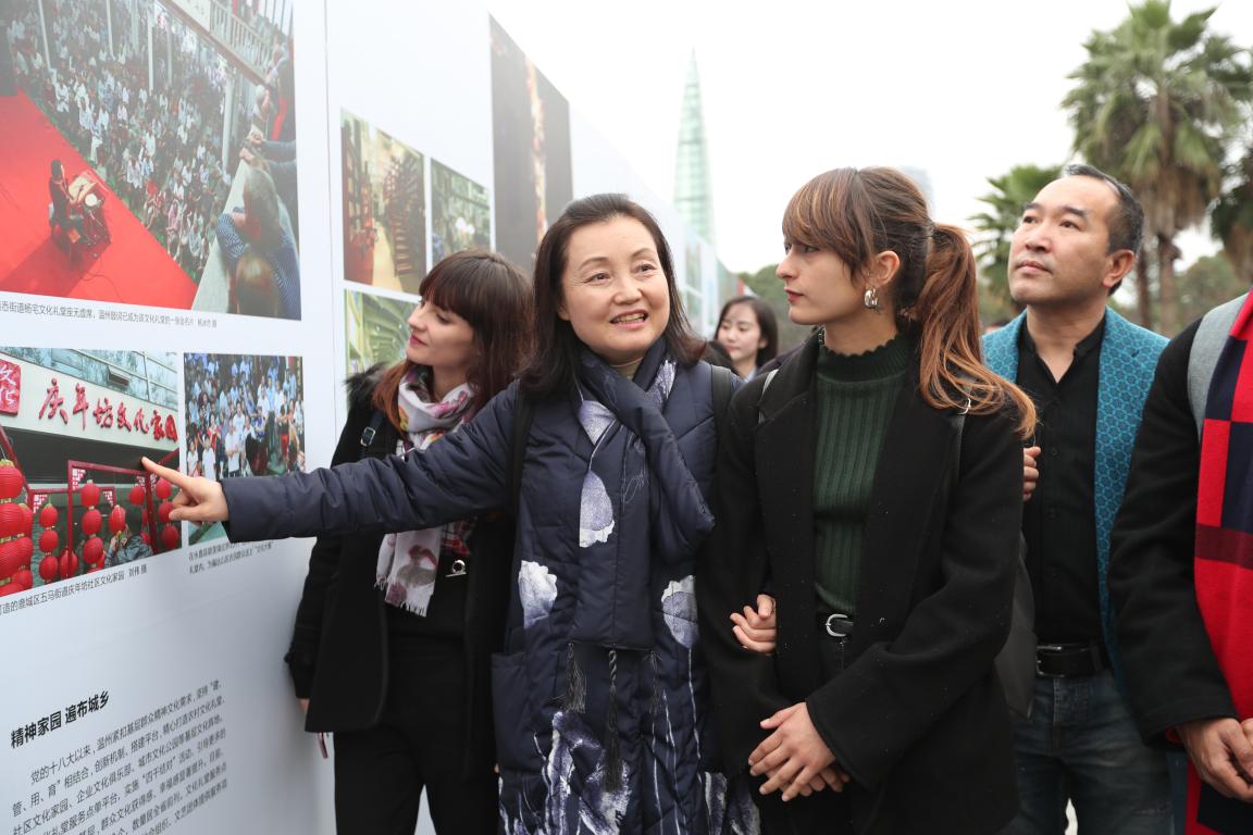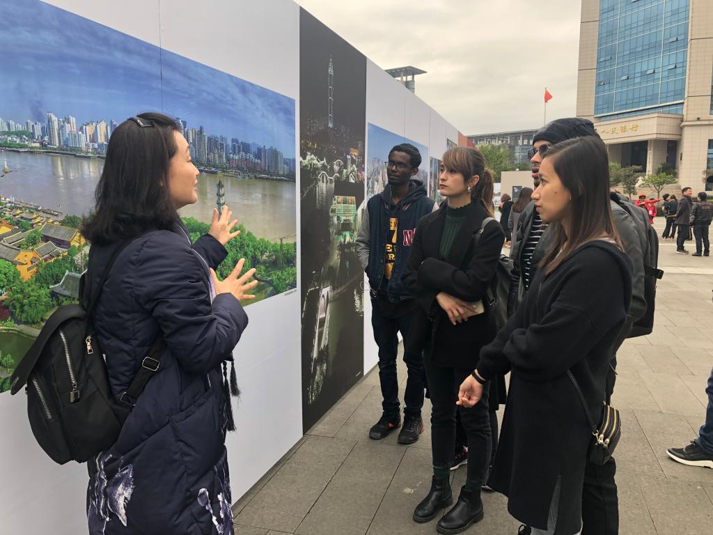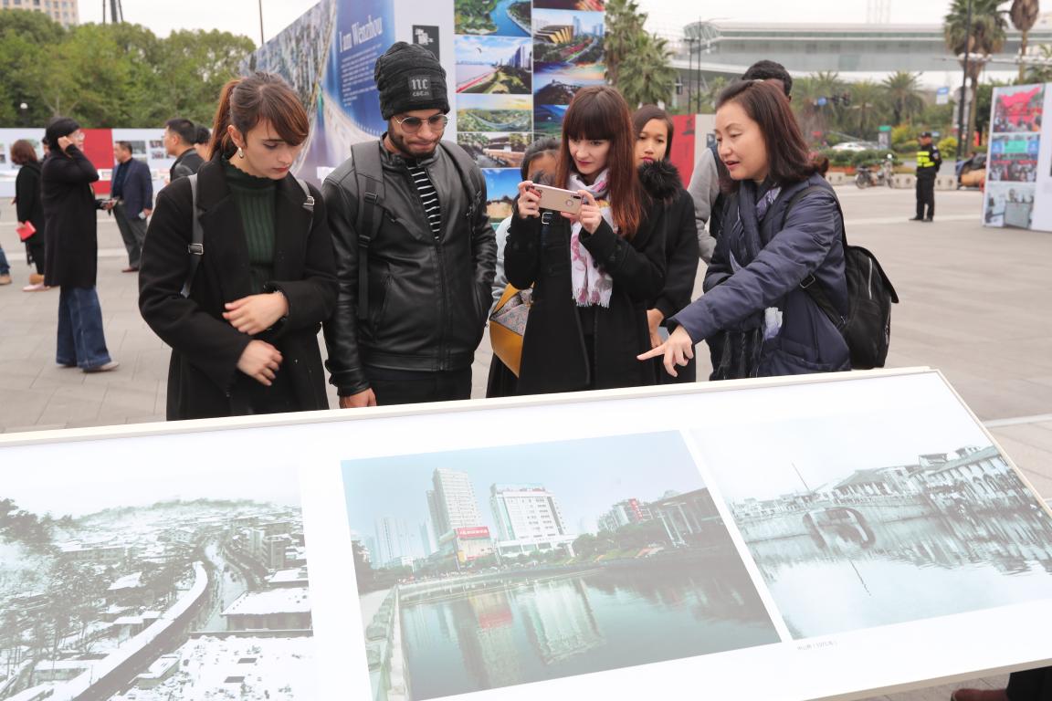 26日下午,det365官网网站来自“一带一路”国家的国际学生来到温州大剧院广场,跟随温州市委宣传部胡剑谨部长的脚步,一边听取讲解员的介绍,还不时停下来询问,胡部长亲切地给予他们解答说明。通过图片,国际学生们能够更直观地了解改革开放40年来温州城乡面貌发生的巨大变化、百姓生活发生的历史性变革和取得的历史性成就,特别是看到他们自己所熟悉的地方和建筑的前世今生后,不时发出阵阵惊叹。参观结束后,国际学生讲述了他们参观后的感受。