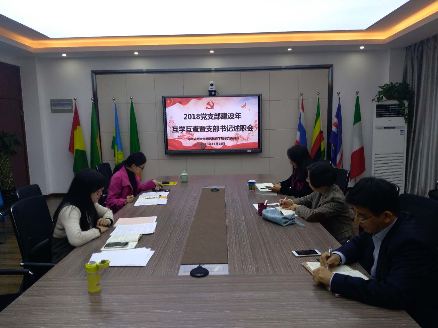 叶苗书记对各支部书记的汇报进行点评。她充分肯定了各支部标准化建设阶段性工作成效,并提出要服务育人,党员要当好中外学生学习和生活的指导者;要文化育人,党员要当好中外文化交融的引路者;要实践育人,党员要当好服务地方发展的实践者,实现抓党建促发展的目的。同时,支部工作要与学院工作相结合,增强党支部的凝聚力,发挥战斗堡垒作用。