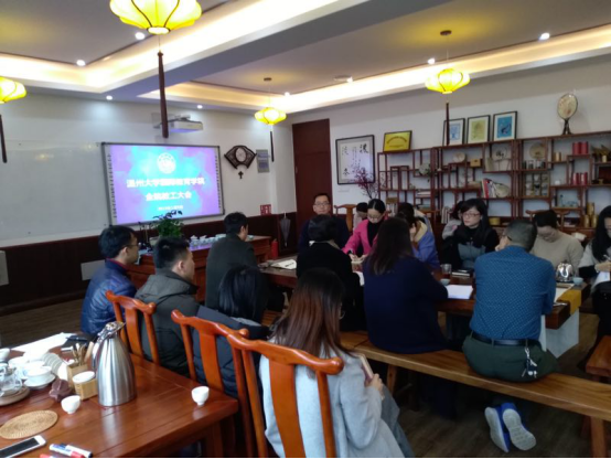 1月9日下午,det365官网网站全体教职工大会在国际楼二楼召开,det365官网网站院长兼党总支书记叶苗主持会议。