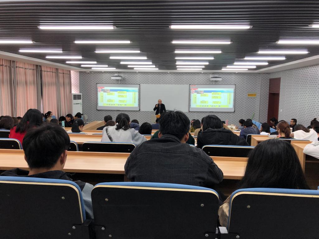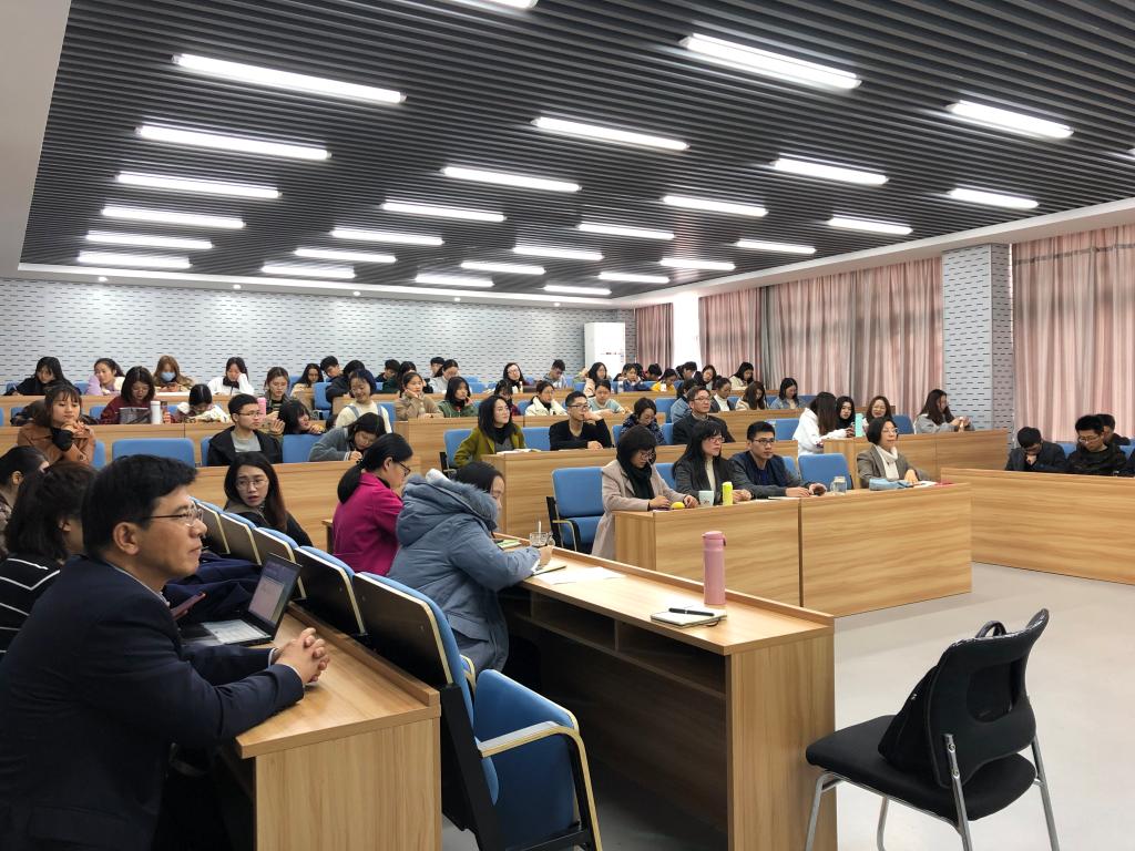 12月19日下午,det365官网网站邀请浙江省委教育工委“学习新思想,千万师生同一堂课活动”讲师团成员、det365官网网站瓯江特聘教授、马克思主义学院副院长卓高生作改革开放四十周年专题讲座,学院全体师生聆听讲座。