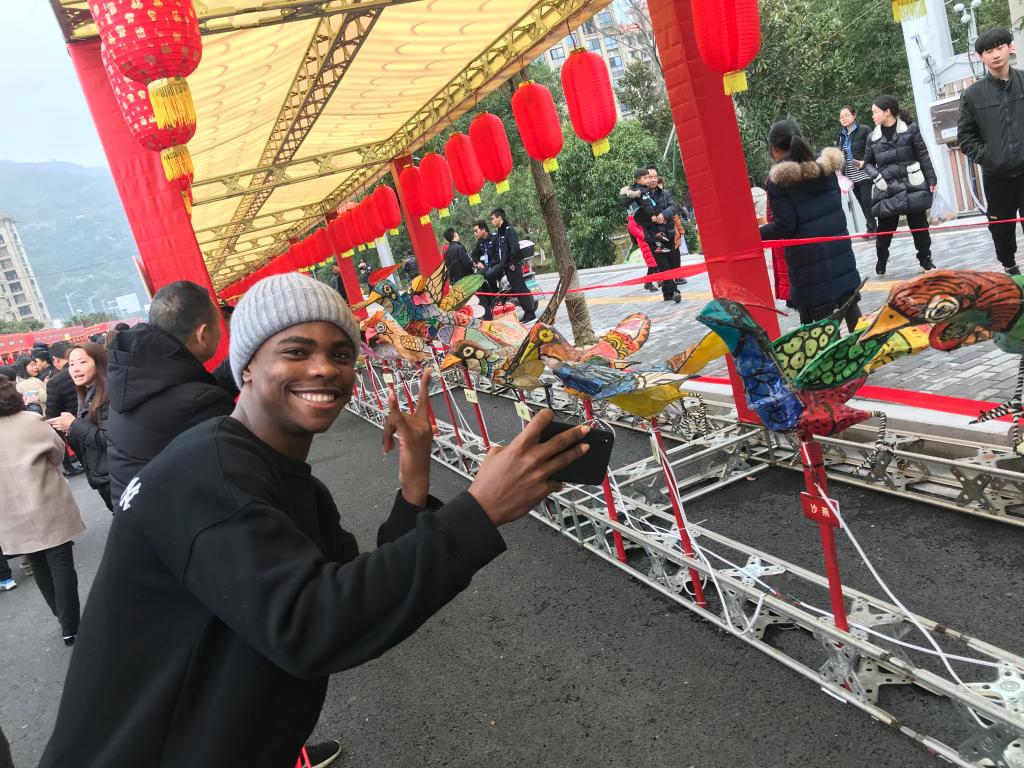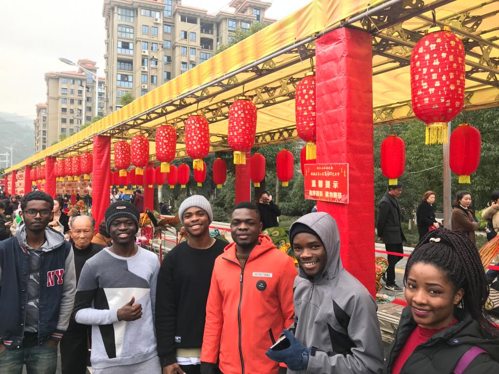 2月19日是正月十五元宵节,国际学院(留管部)组织了来自尼日利亚、赞比亚等国家的留校国际学生代表参加了在茶山镇举行的2019年瓯海区第届百鸟灯艺术节活动。