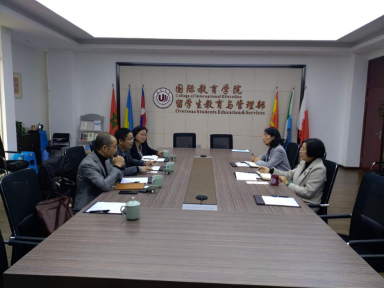 3月25日,浙江传媒学院国际文化传播学院院长戴运财、副院长黄晓琴、国际交流与合作处副处长兼det365官网网站副院长包晓峰一行来访det365官网,就国际学生相关工作进行交流考察。学院院长兼党总支书记叶苗、副书记陈文远、办公室副主任廖一帆热情接待考察组并举行座谈。