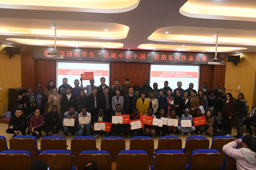 此次大赛共收到8个学院、3个年级、11个国家、19名国际学生的参赛作品。经过3月28日国际学生奖学金及荣誉评审工作小组的初审,10名国际学生的作品进入最后的决赛。埃塞俄比亚籍国际经济与贸易专业2017级学生OUMER HALLET AHMED比较了她想象中的中国和来华之后看到的现实中国之间的差异,描绘了自己对中国科技、人文、自然环境等方面的热爱。佛得角籍机械工程专业2017级学生GOMES ALVES LIZARDO ALBERTO JOAQUIM对中国的饮食文化深有感触,他说自己对中国的第一印象就是筷子,印象最深的中国食物是面条,来华后他就对中国面食和菜肴产生了极大的兴趣,已经开始学做中国菜。喀麦隆籍土木工程专业2016级学生NGWA ROGER全程用流利的中文向观众展示了他眼中的中国,他生动地回顾了在中国的学习经历,全面地分享了对中国历史、工艺、绘画、书法等方面的见解,他的语言诙谐幽默,用词准确,俨然是一个地道的“中国人”。他说,“虽然我在中国感受到了一些不适应的地方,但我还是深爱中国,我对中国的爱将永远留在我心中!”他的展示获得了全场热烈的掌声。