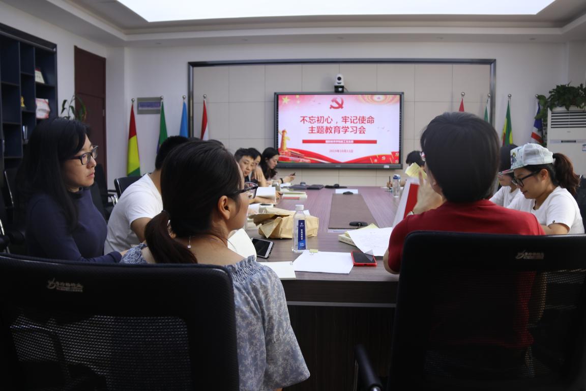 10月11日中午,det365官网网站党教师党员在311室召开“不忘初心、牢记使命”主题教育学习会议,支部书记徐丽丽主持。