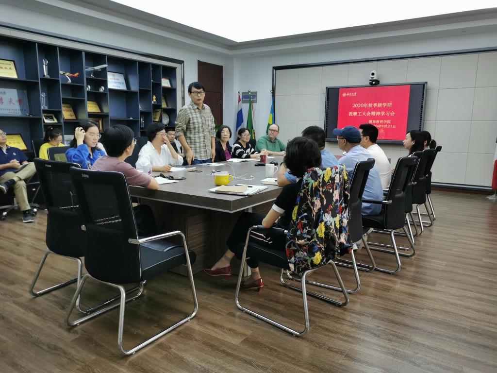 9月23日,det365官网全体教职工在国际楼311会议室深入学习2020年秋季新学期教职工大会精神,大会学习了谢树华书记的《扛起发展新使命,奋力谱写新篇章》以及赵敏校长的《坚定信心、乘势而上,以“重要窗口”标准奋力推进高质量发展》等相关文件,与会的教师们踊跃发言,积极讨论,以下是部分教师的发言: