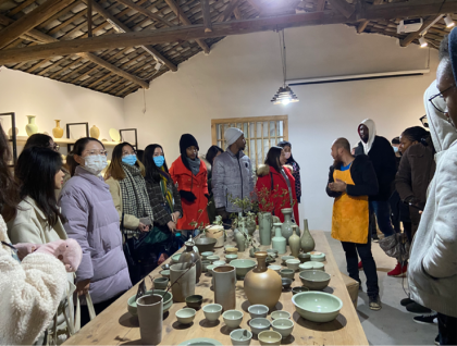 冬月初至,窗外的一切似乎都被突袭的寒意笼罩着,骤然凝结住了,然而我们学习的步履却从未停止前进。det365官网网站张珉璐老师特组织20级汉语国际教育硕士研究夏百鹤,杨靖琪,桂璐三位同学一同策划开展了此次瓯窑小镇研学活动。此外,本次活动还邀请了温州市非物质文化遗产“瓯窑烧制技艺”代表性传承人暨温州浙疆青瓷文化有限公司创始人章长才先生,带领同学们参观了解瓯窑烧制工艺的历史及亲身体验瓯瓷制作的过程。
