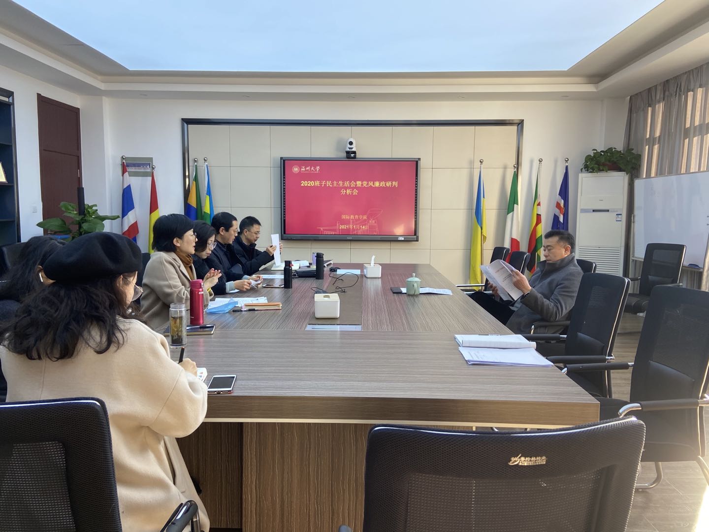 薛伟副校长听完学院领导班子的个人剖析和相互批评后,进行了全面点评。他对学院班子成员的深入剖析表示认可,并对学院2020年的工作给予了充分的肯定。他指出,det365官网网站在学校建设国际化特色高校、留学温大品牌建设中发挥了重大作用,作为学校国际化建设的排头兵,det365官网网站班子成员应进一步重视政治理论学习,科学谋划发展蓝图,重视学位点的建设和评估,强化与国际生培养单位的联动机制,提升温大国际化水平。