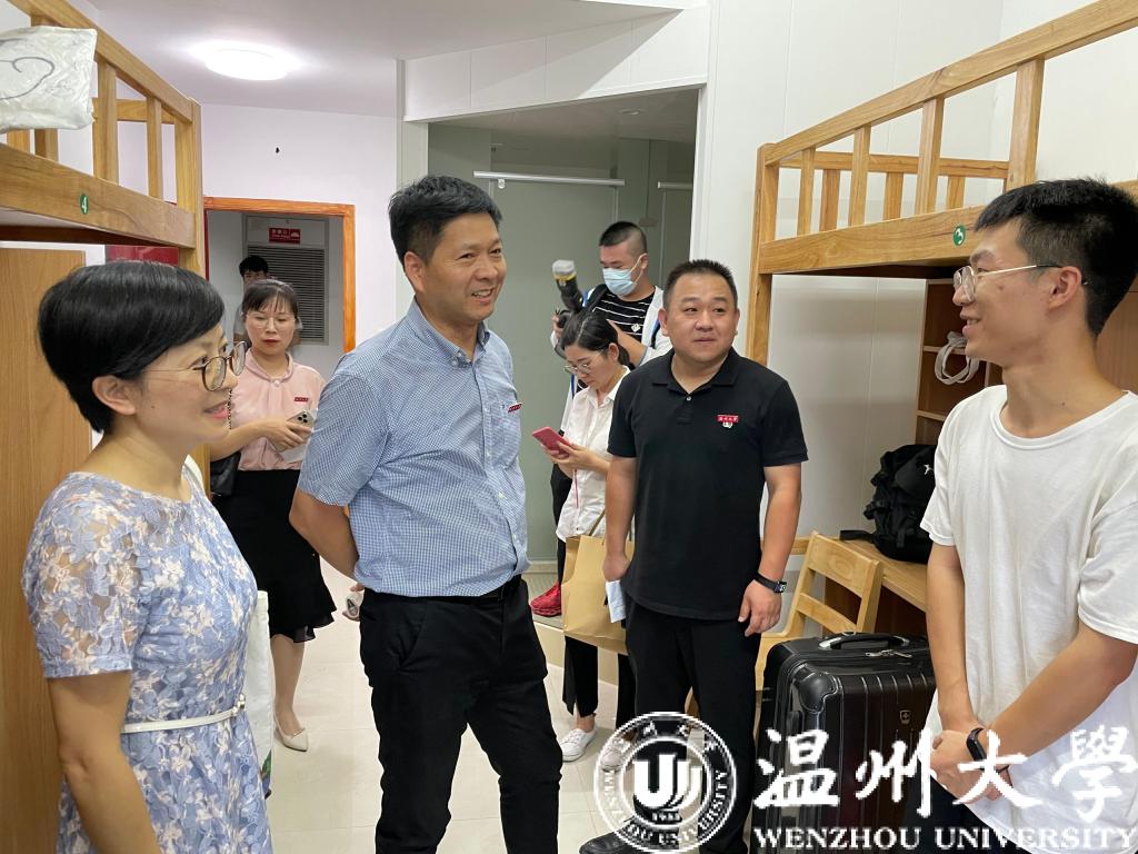 校党委副书记庄兴忠也专程来到det365官网研究生宿舍,看望了det365官网新生。他细心得向同学们介绍了温大近年来的发展,尤其谈到我校近年来陆续被评为省重点建设高校及博士学位授予单位,他希望同学们尽快转变角色,全身心投入到科研中,也祝愿同学们早日拿到科研成果。