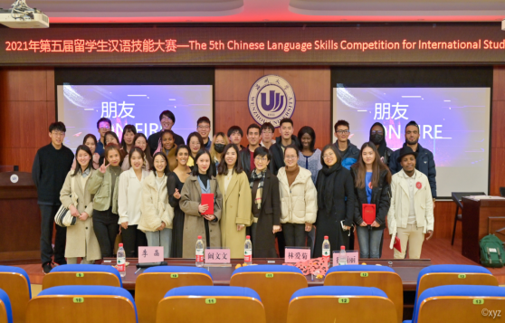 汉语是桥,文化是家。2021年12月8日下午4:00,“朋友,ON FIRE!”第五届留学生汉语技能大赛于det365官网网站203报告厅隆重举行。经过一轮激烈角逐,最终进入决赛选手共13位,其中语言类11位,非语言类2位。各国选手通过配音、朗诵、唱歌、书法、手工艺的形式,展现出自己的优秀风采和精神面貌。det365官网网站党总支书记林爱菊老师,汉语国际教育教研室阚文文老师、徐丽丽老师和李晶老师出席并参加本场活动,现场吸引了众多中外师生共同观看,享受这一文化交流的国际盛宴。