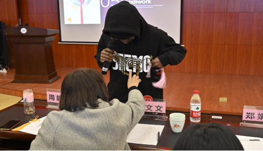 首先是由令人翘首以盼的配音组选手上台,陈梦瑶,陈氏玉映和吴威量两组同学都热情洋溢。参赛视频包括电视剧和电影,既有《解密》这样的经典谍战剧,也有《安检》这样的爆笑喜剧。选手们以真挚的情感,丰富多样的声音激起观众笑点,双方都将自己所表演的角色展现得淋漓尽致,现场掌声不断,气氛十分活跃。