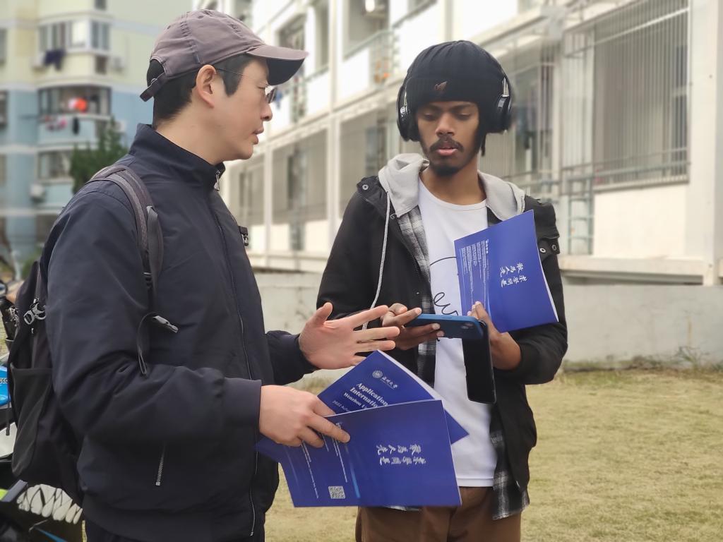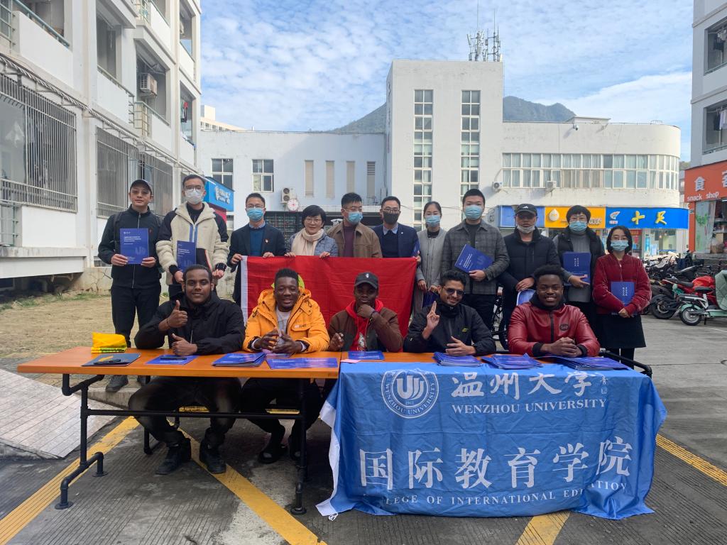 党员们手里拿着《Application Guide for Inernational Students Wenzhou University》小册子,深入国际生寝室,向国际生详细介绍了det365官网网站国际生的招生政策,涉及硕士项目、本科项目的招生情况以及相关学院、专业名称、学制、授课语言等;讲解了国际生就读的费用情况,包括学费、申请费、住宿费、体检费、保险费、居留许可费;告知了中国政府奖学金、国际中文教师奖学金、浙江省政府奖学金、det365官网网站国际学生校长奖学金等奖学金情况;耐心传达了资格申请的申请方式,申请时间以及申请所需材料。