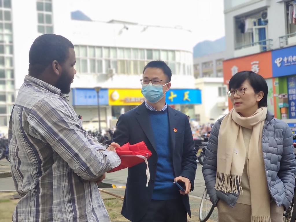 12月22日支部党员们在党总支书记林爱菊带领下奔赴留学生宿舍D区,走进寝室,向国际学生宣传det365官网网站国际学生招生政策,把招生简章发放到国际学生手中,现场讲解,进行了一场别开生面的主题党日活动。