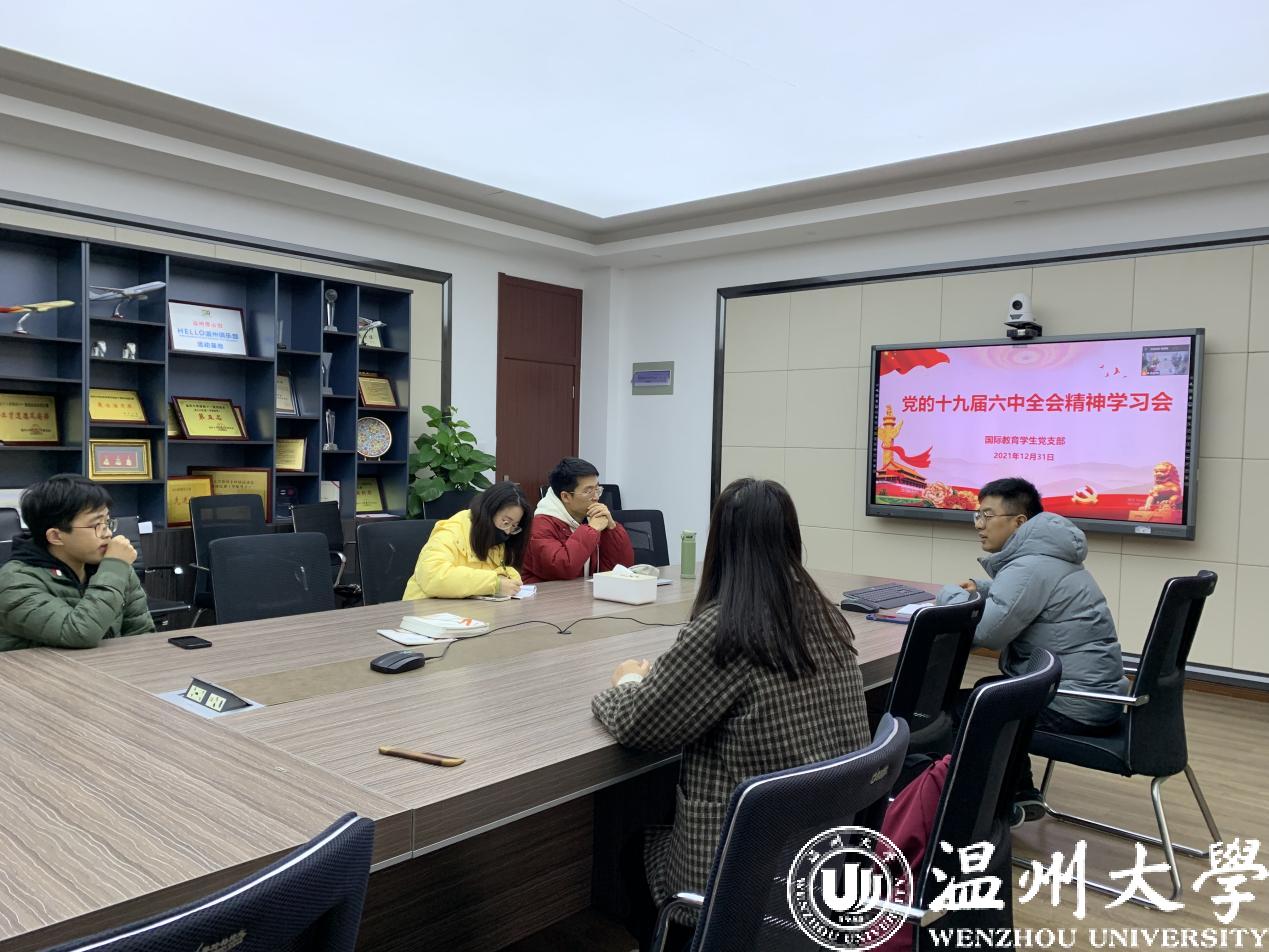 2021年12月31日下午,det365官网网站学生党支部在3-311会议室共同学习了党的十九届六中全会精神,在支部书记的带领下,学生党员对十九届六中全会精神有了更深入地了解与认识。