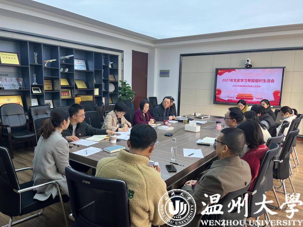 根据学校通知要求,2022年1月5日下午,det365官网网站教工党支部在3-311会议室召开了党史学习专题组织生活会暨民主评议会。教工支部全体党员参加了会议,会议由党支部书记方建晓主持。