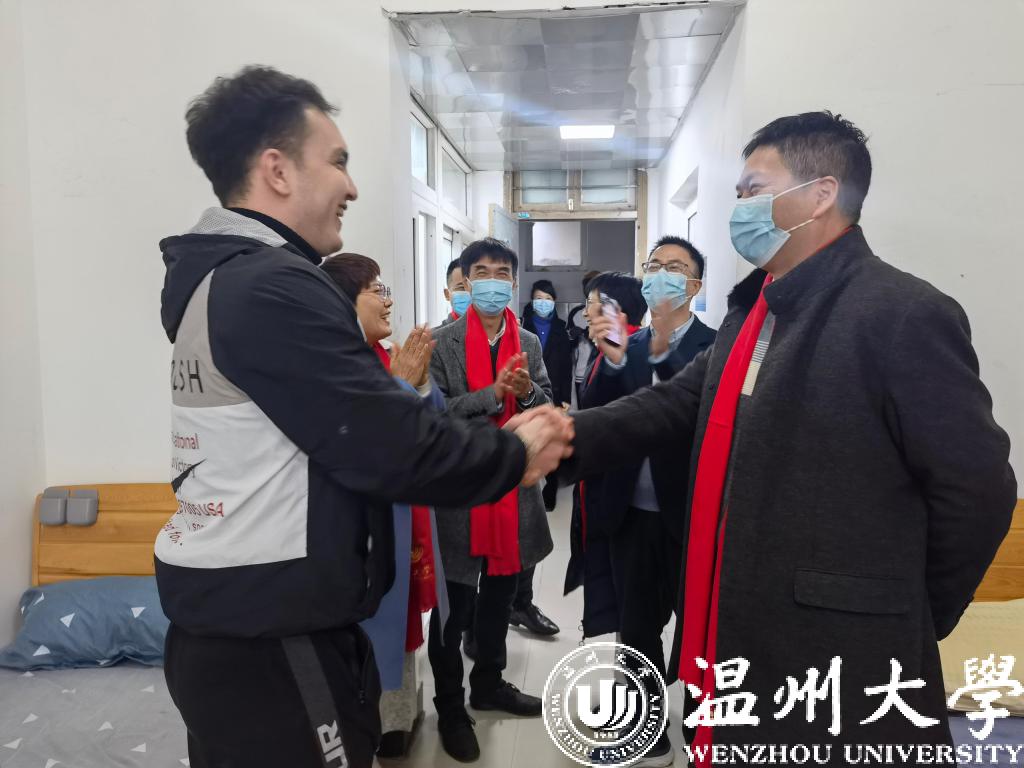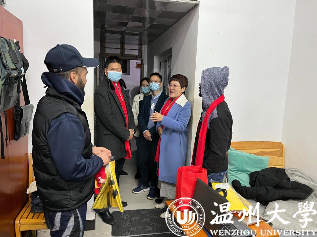 最后,校领导庄兴忠一行来到了留学生宿舍,将新年的问候送至每一位留学生。