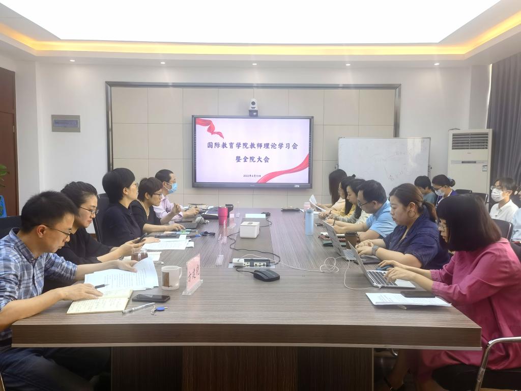 4月13日下午,det365官网网站全体教师在国际楼311会议室召开教工理论学习会暨全院教工会议,书记林爱菊主持。