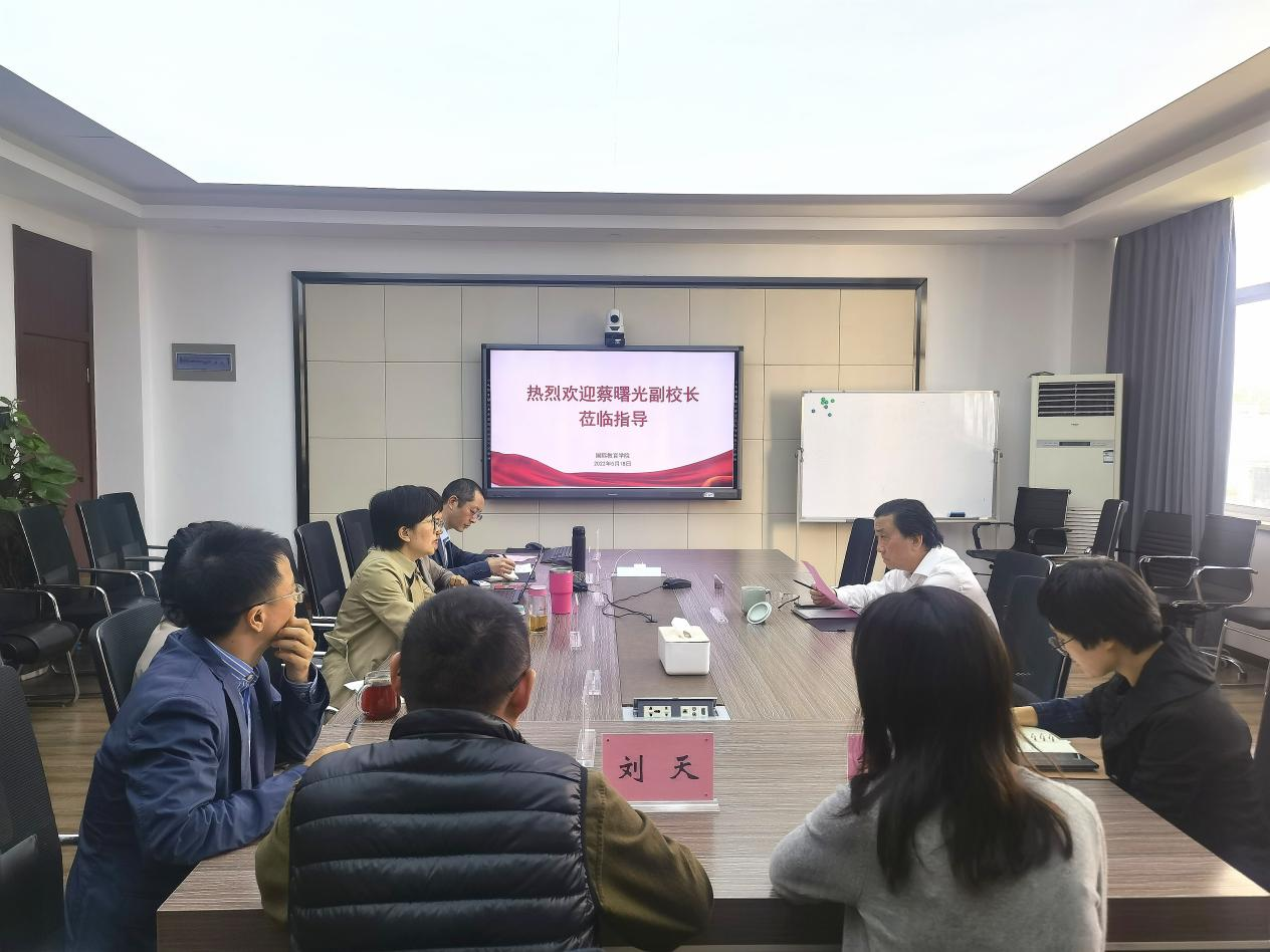 5月18日上午,det365官网网站副校长蔡曙光莅临det365官网指导工作。学院院长宋占美、党委书记林爱菊、副院长熊勇、副院长吴之欧、副书记方建晓与各科室科长参加交流。