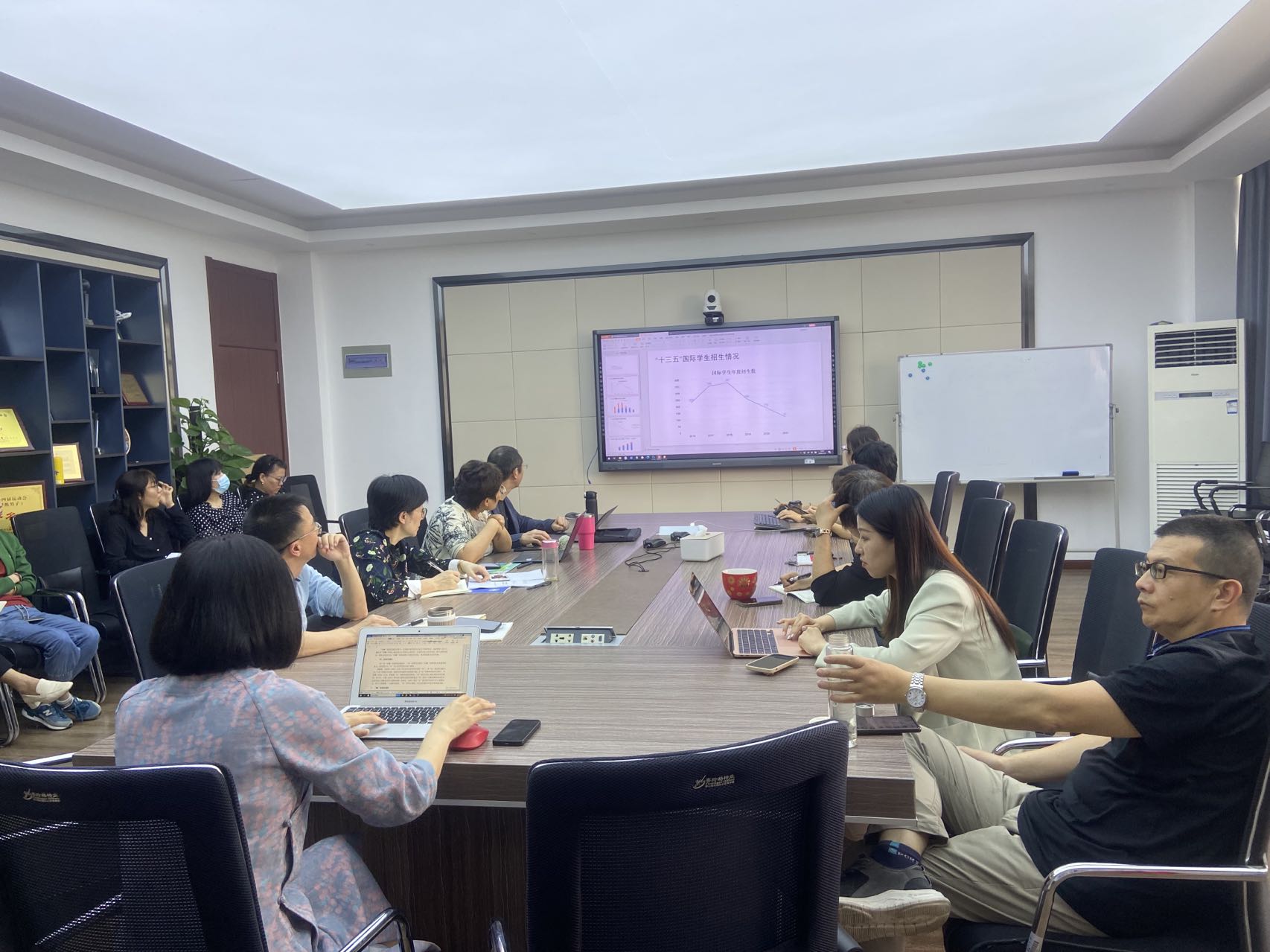 与会人员就学院的招生工作进行了逐一发言,他们分别对国家相关政策、招生工作实际、现有招生资源等进行厘清,建言献策,深入交流,围绕后疫情时代国际招生工作所面临的机遇和挑战进行了充分的讨论并达成共识:一是要做到走出去,亲临国内留学生人数多的城市,与留学生展开面对面交流,亲口告之学校的国际学生的招生政策;二是充分用好现有的国际学生资源,让他们对境外有留学需求的学生做思想工作,采取口碑相传的方式,充分了解我校的招生动向。同时,学院成立了招生工作专班,国际学生通识教育教研室主任张珉璐老师、学工办程玲老师加入招生工作专班,协助招生科做好国际学生的招生工作。