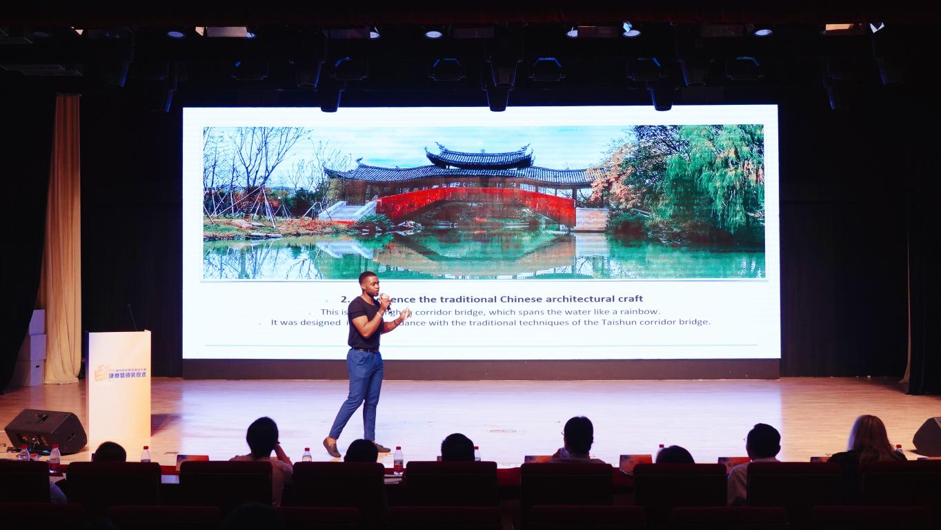 睿君介绍了三垟湿地美丽的景色和自己的感受。通过精心准备的PPT向现场观众展示了浙南威尼斯美誉的湿地风景。现场活泼的表现以及机智的即时英语演讲风格赢得了现场观众的掌声。