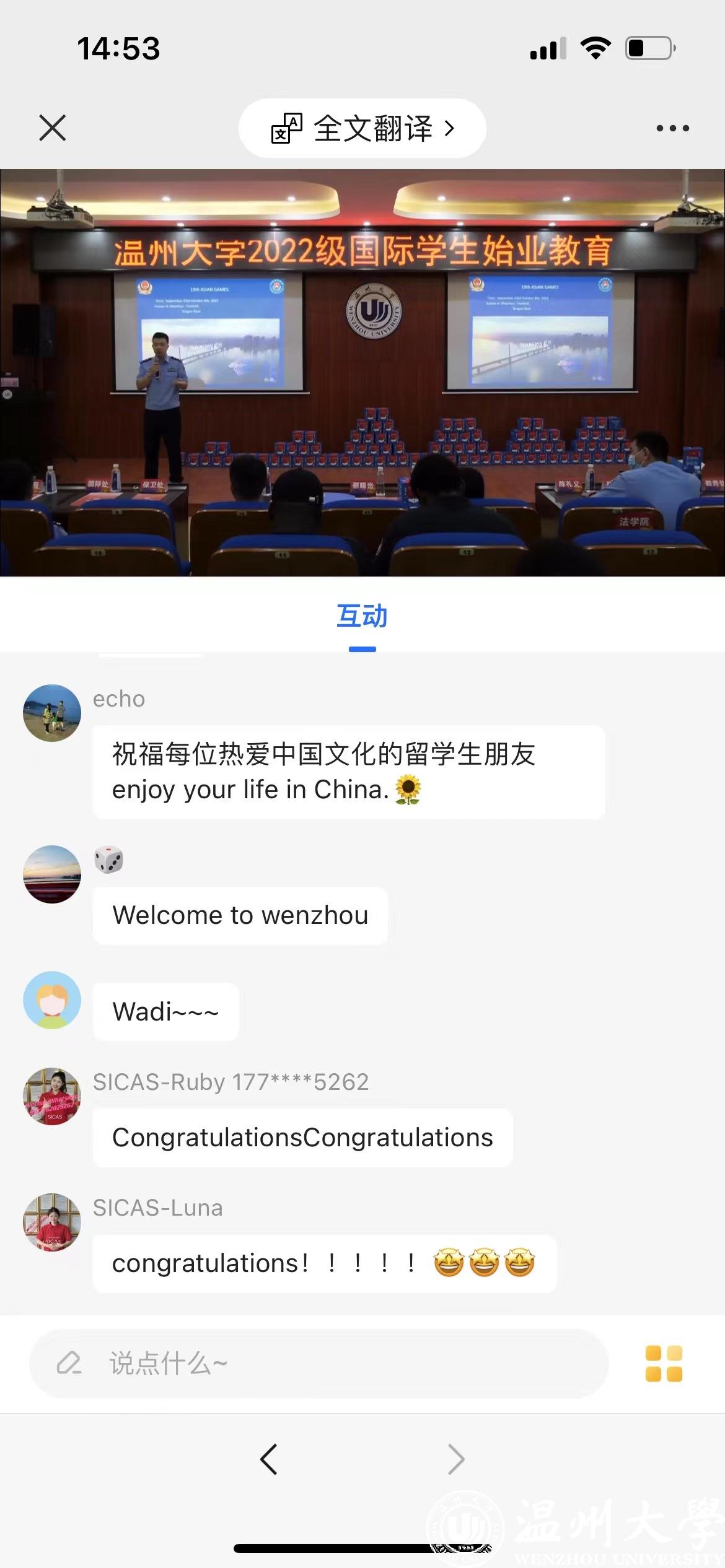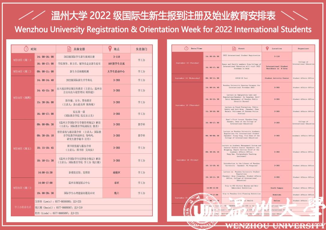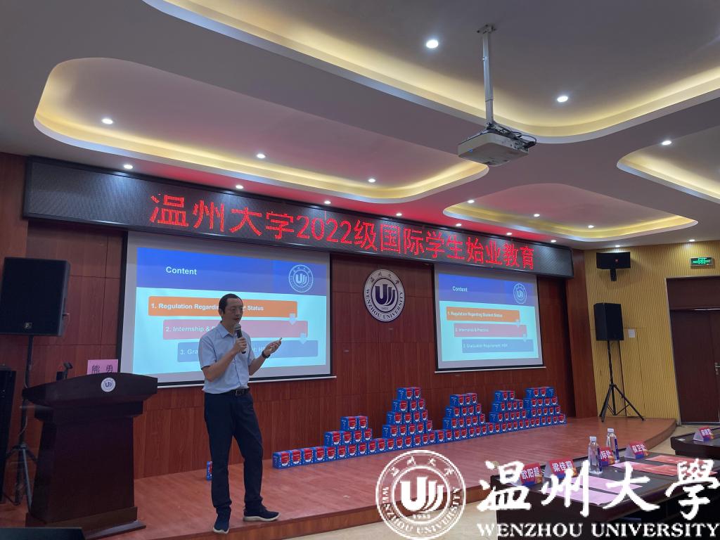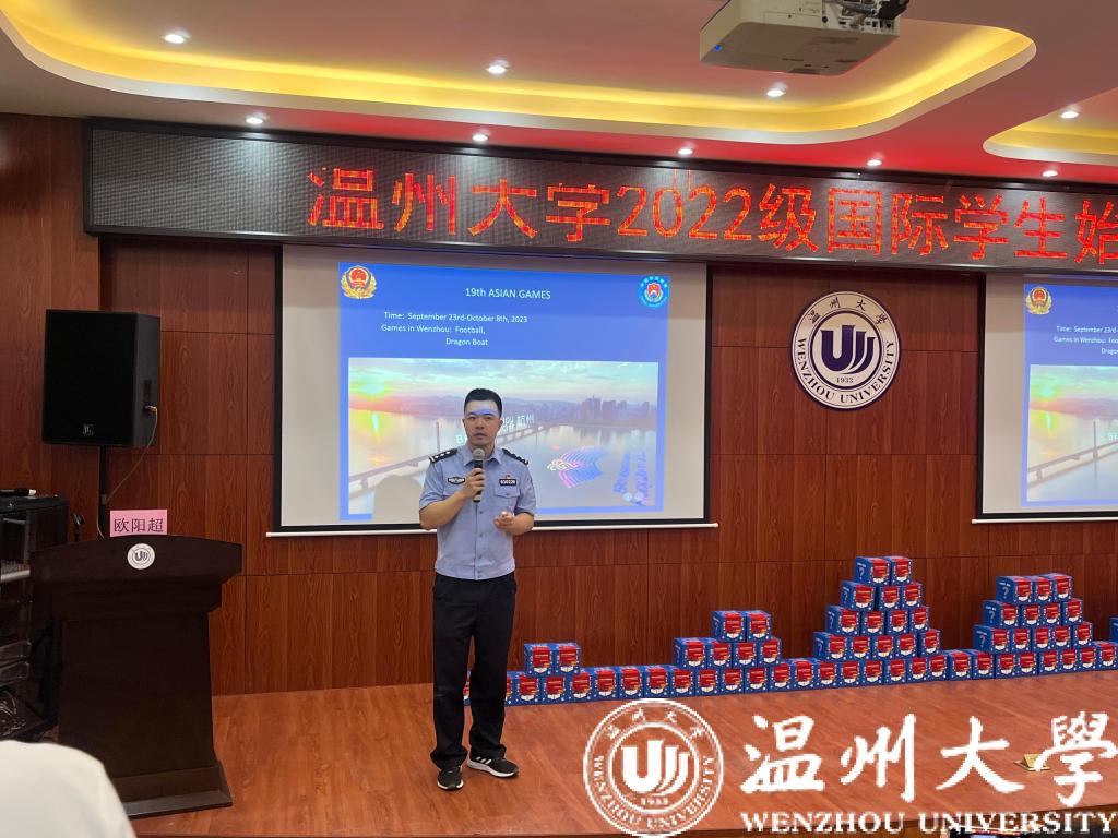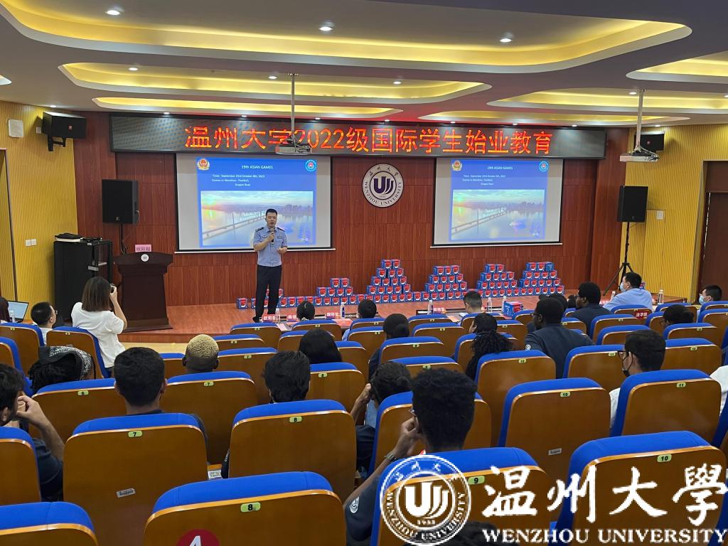 为帮助2022级国际新生全方位了解国情、校情,以全新面貌和昂扬姿态开启留学温大生活。9月15日,为期一周的2022级新生始业教育活动在开学典礼后拉开序幕。温州市出入境管理局欧阳超警官,瓯海区出入境管理大队麻晓军、陈礼义、梁佳莉警官,茶山派出所民警陈海敏,校图书馆吴凤仙,det365官网网站相关科室领导老师,全体国际学生参加了新生始业教育。