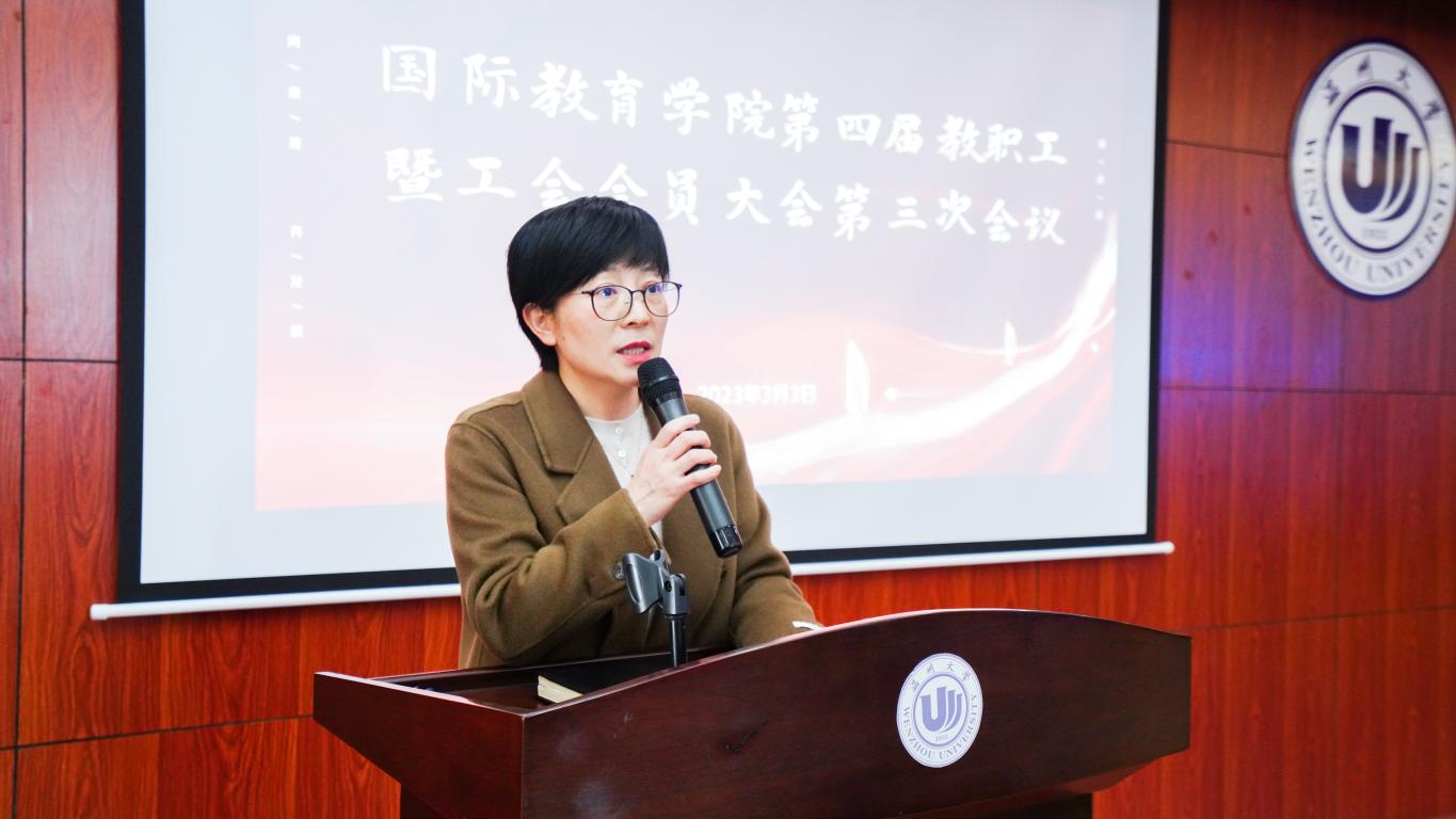 3月3日下午,det365官网网站在国际楼203报告厅召开第四届教职工暨工会会员大会第三次会议。会议由学院党总支书记林爱菊主持,全院教职工参加会议。