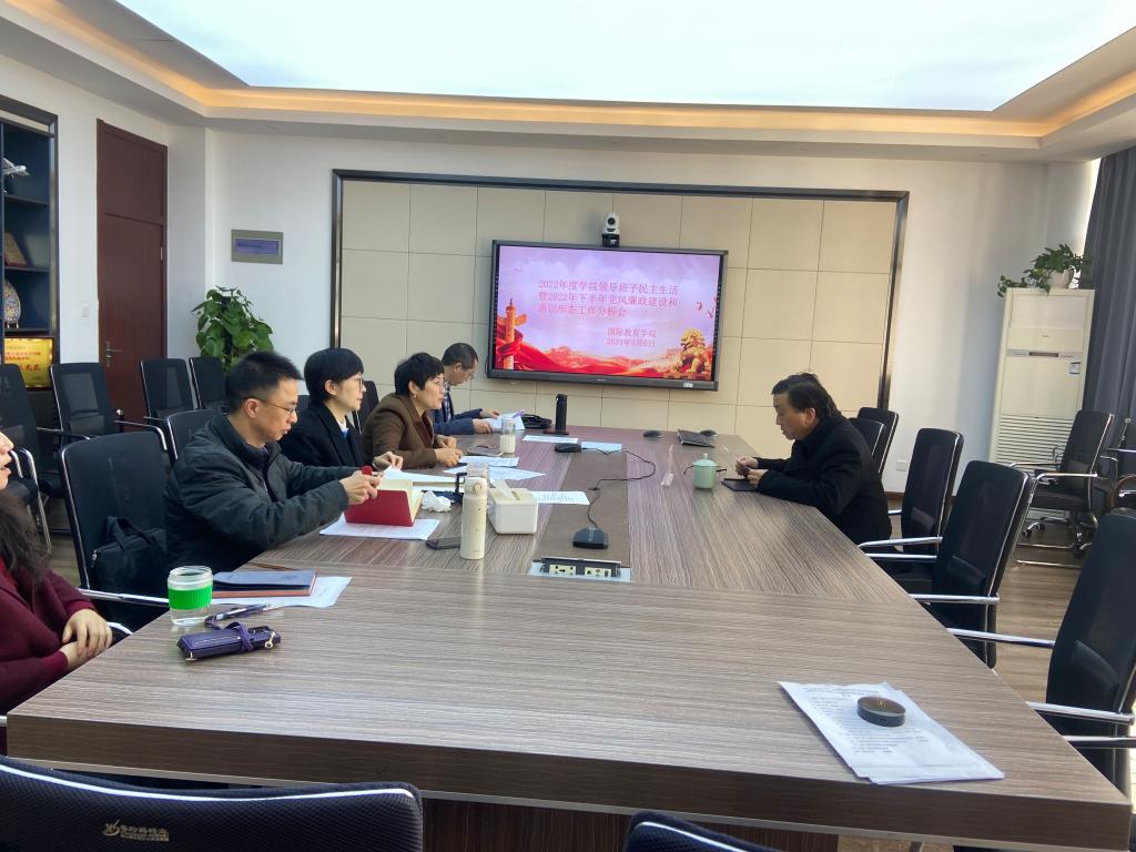 3月6日上午,det365官网网站领导班子在国际楼311会议室召开2022年度班子民主生活会暨党风廉政和意识形态工作分析会,学院领导班子成员参加会议,会议由党总支书记林爱菊主持。校党委委员、副校长蔡曙光全程指导。