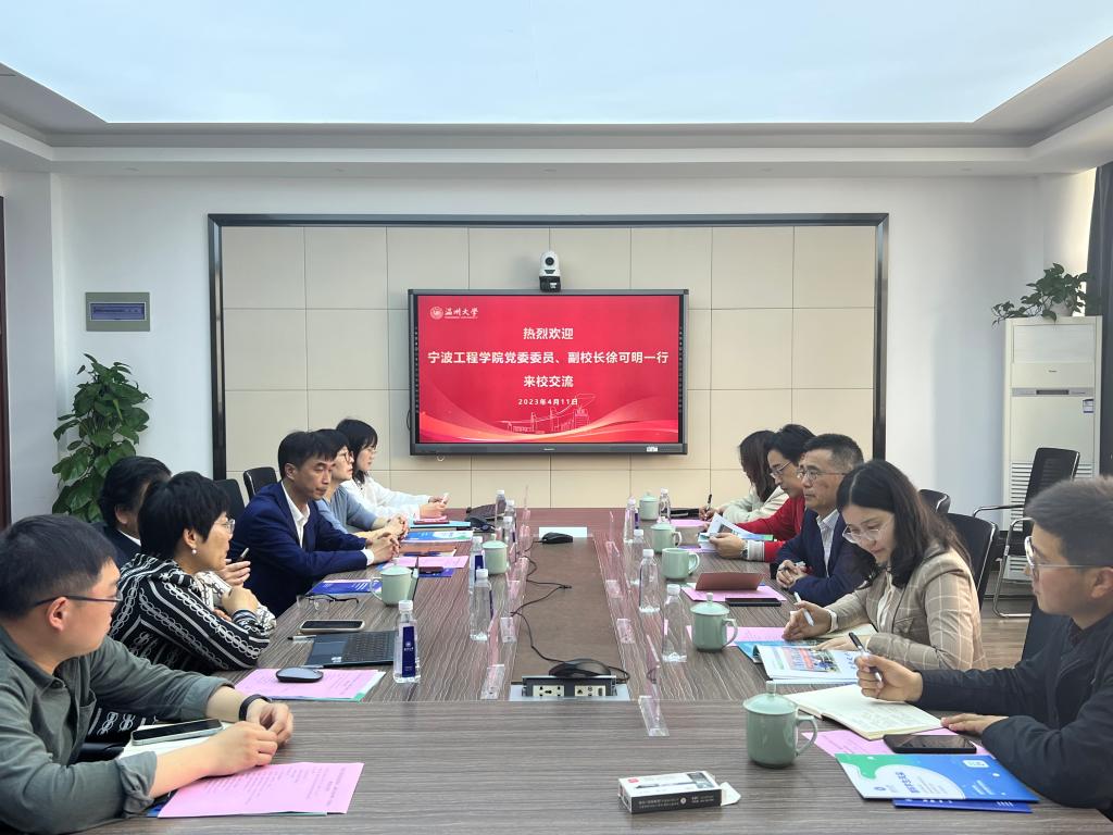 4月11日下午,宁波工程学院副校长徐可明一行来我校交流座谈,副校长蔡曙光、国际交流与合作处处长黄文浩、det365官网网站院长宋占美、党总支书记林爱菊、学工办主任刘天和辅导员程玲参加座谈。