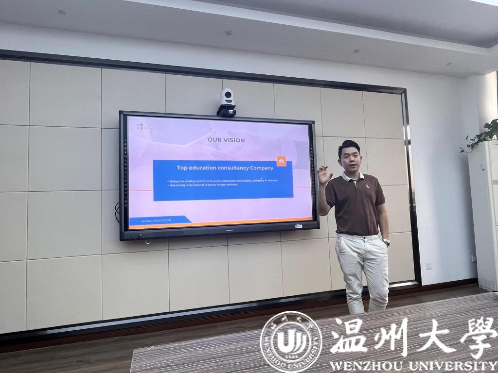 会上,熊勇副院长首先对DANG MINH QUANG一行的到来表示热烈欢迎,他从我校国际学生办学规模、专业设置、人才培养等方面介绍了det365官网的基本情况。他希望双方在招生宣传方面加强交流与合作。DANG MINH QUANG对NI HAO EDUCATION从成立背景、组织架构、发展理念、成功案例等方面进行了详细介绍。他希望通过双方努力,助力更多越南优秀青年来温大留学。
