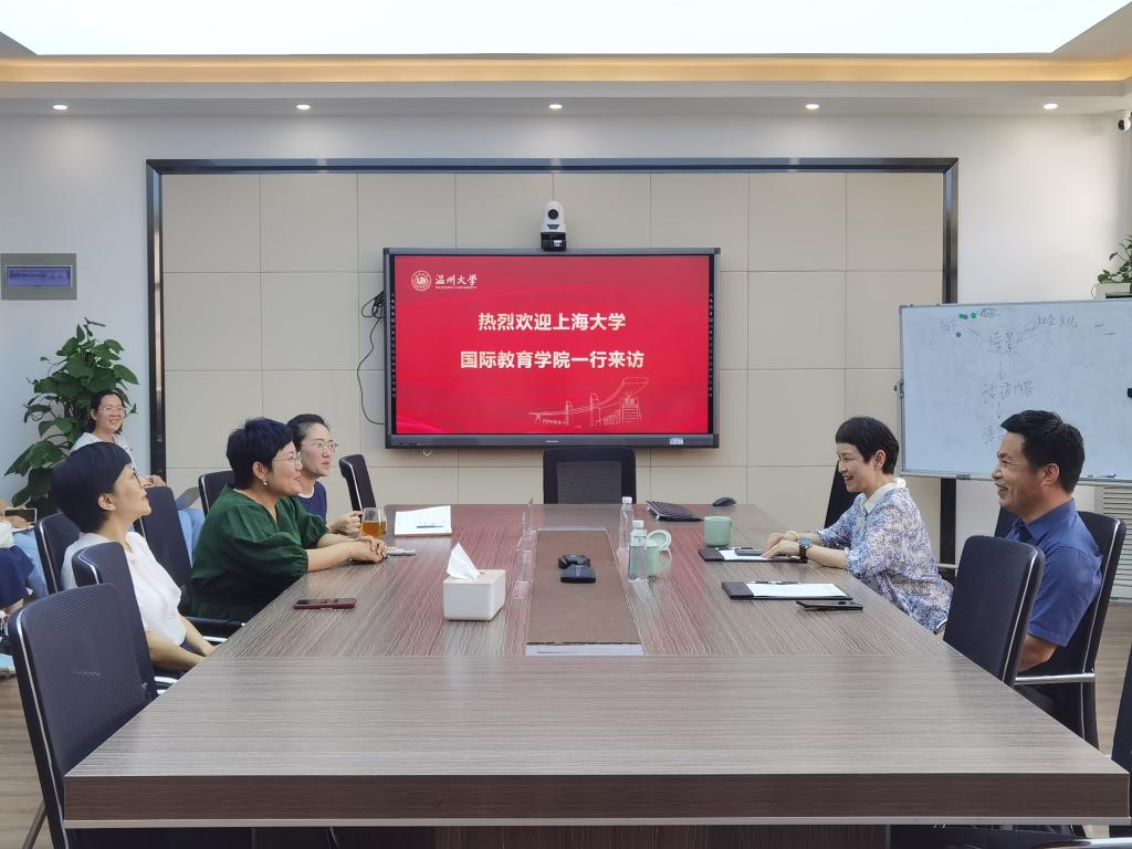6月5日,上海大学det365官网网站院长李颖洁与副院长裴雨来来访det365官网交流指导。院长宋占美、党总支书记林爱菊、副院长吴之欧以及汉语国际教育专硕点学生参加此次交流会。