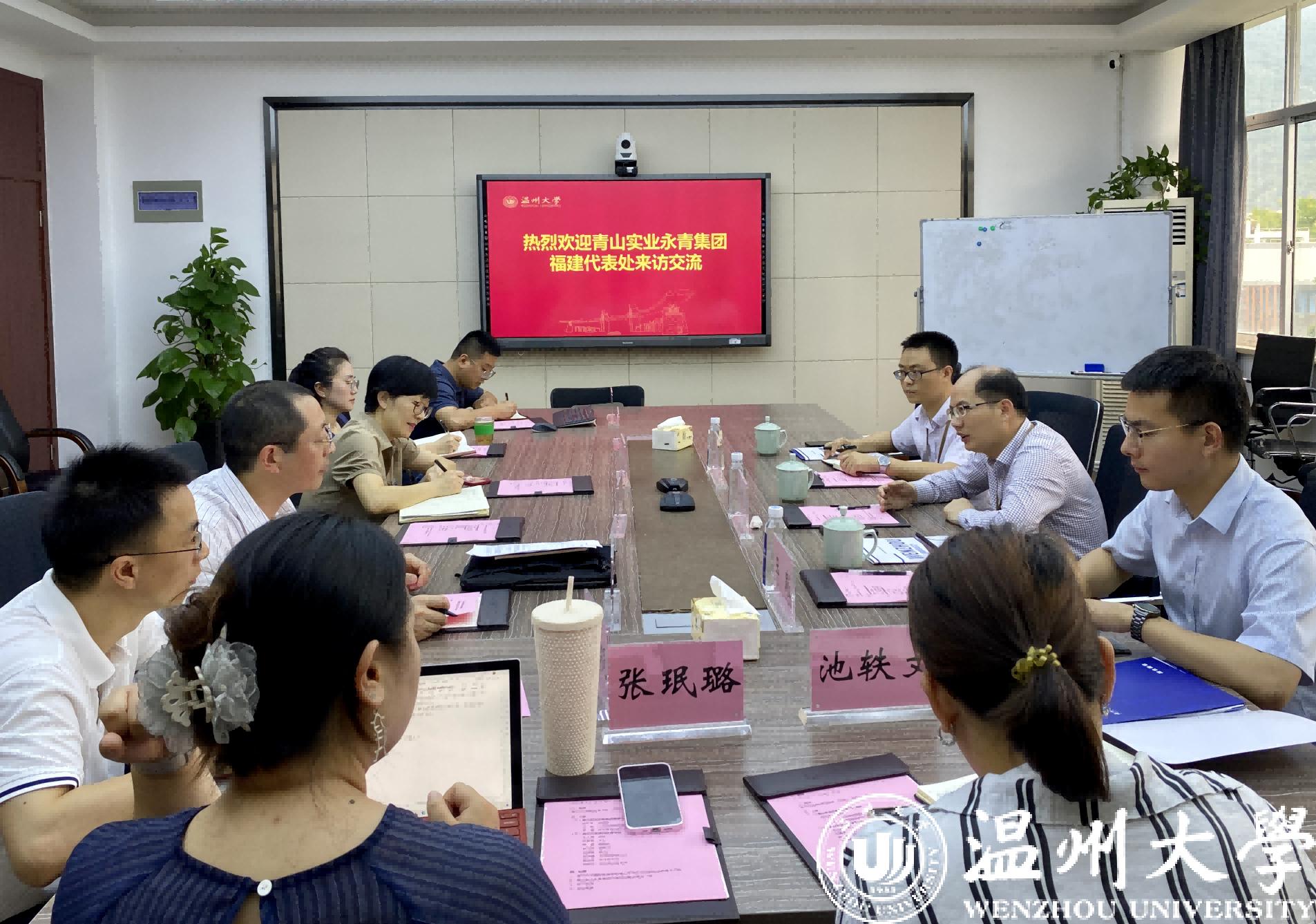 6月14日下午,青山实业永青集团福建代表处总经理陈纪亨、人力资源部副经理王胤、综合管理部副主任李偲一行来院交流洽谈,det365官网网站全体班子成员及通识教育教研室、招生科相关人员参加会谈。