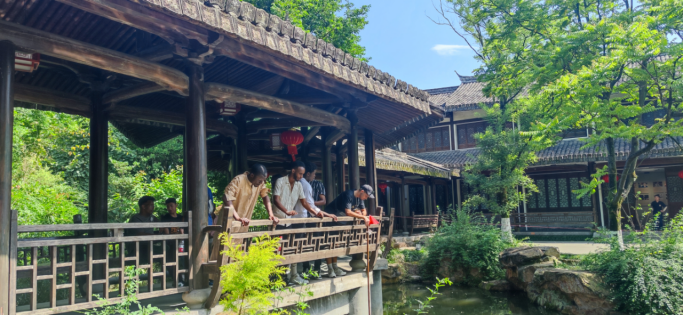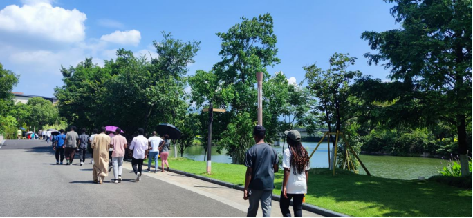 5月31日下午,晴空万里,风景如画。det365官网网站国际学生国情教育名师工作室暨“走进温州”开启了本学期系列活动的最后一站——三垟湿地暨南怀瑾书院。来自英国、俄罗斯、意大利、尼日利亚、越南、孟加拉国、泰国、土耳其、刚果、肯尼亚、摩洛哥、埃塞尔比亚等24个国家和地区的留学生们一起漫步三垟湿地并参观南怀瑾书院。三垟湿地是温州市内保持最完整的水网湿地,被誉为“浙南威尼斯、百墩之乡”,有城市“绿肾”的美称。留学生们满怀热情地参与到这次出行中,留下了很多青春的脚印。