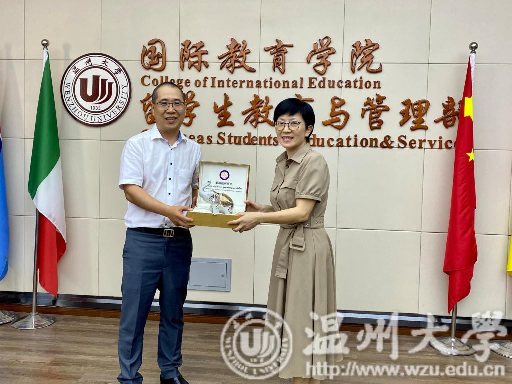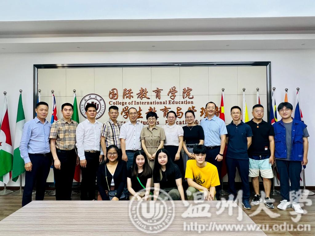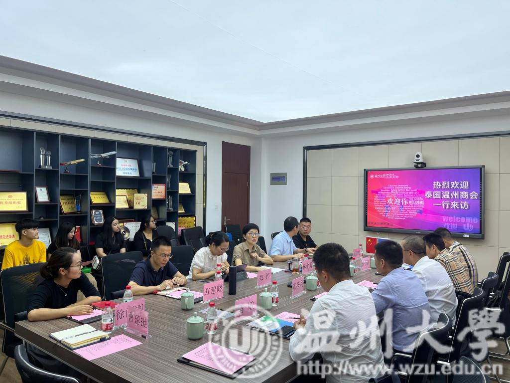 2023年7月14日,泰国温州商会会长郑炳克、常务副会长薛圣萍、章圣利、会务顾问沈高良、陈敏一行来院交流洽谈。国际交流与合作处副处长郑婷、det365官网网站党总支书记林爱菊、副书记方建晓、汉语国际教育教研室主任徐丽丽及相关科室老师、泰国“腾飞班”学生代表参加交流会,学院副院长熊勇主持会议。