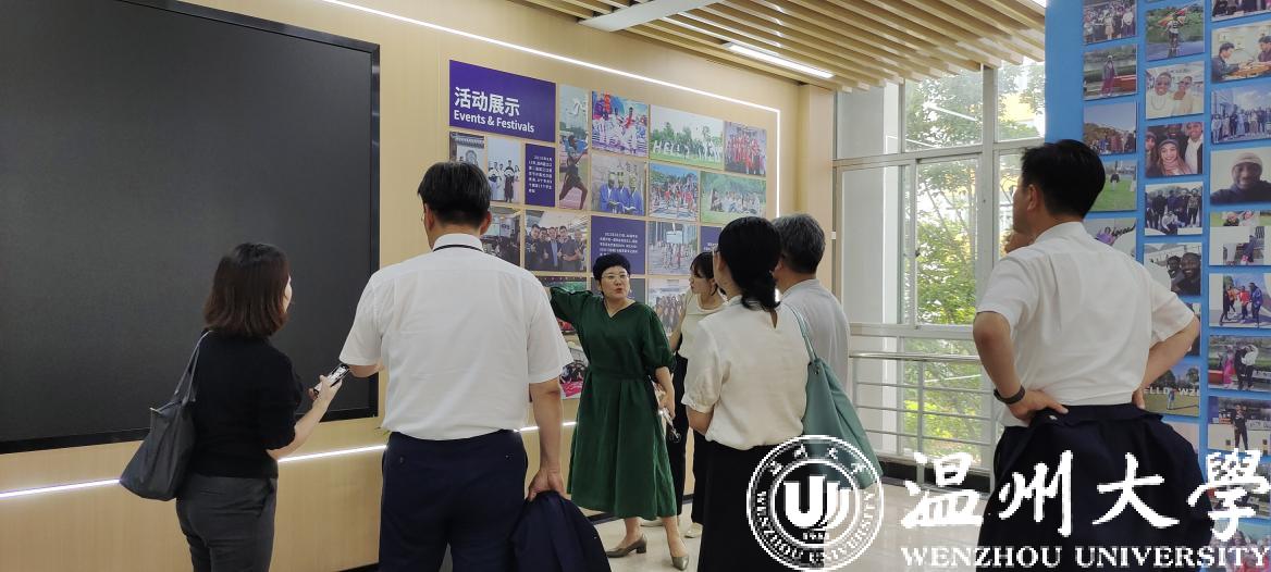 首先,宋占美院长陪同代表团一行参观了学院国情教育馆,向客人简要介绍了温州市情以及学校、学院的发展历程,生动讲解了det365官网网站国情教育工作室校内基地建设及国情教育活动的开展情况。带领代表团参观了学院文化墙,重点介绍了学院概况、学科专业、师资力量、特色活动、服务地方等内容。并参观了唐风语言多功能实验室、茶香国际中华文化传播基地等语言学习与文化体验场所。