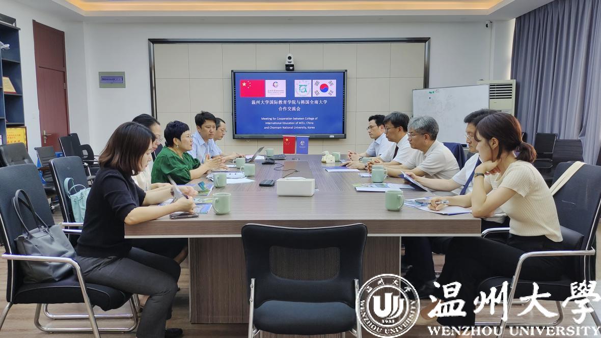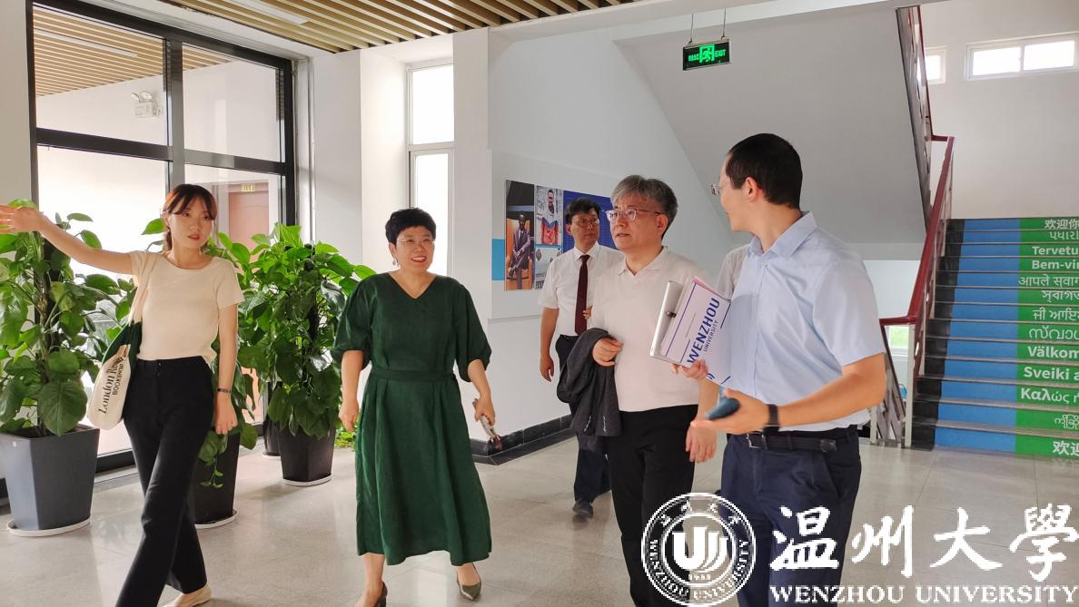 2023年8月30日,韩国全南大学教务处处长李明奎、规划协调处处长金载润、国际处处长鞠旻锡、主任卢正哲、主管姜信慧、协调员李世荣一行来院交流。det365官网网站院长宋占美、副院长熊勇接待了代表团一行,国际交流与合作处副处长郑婷参与接待。