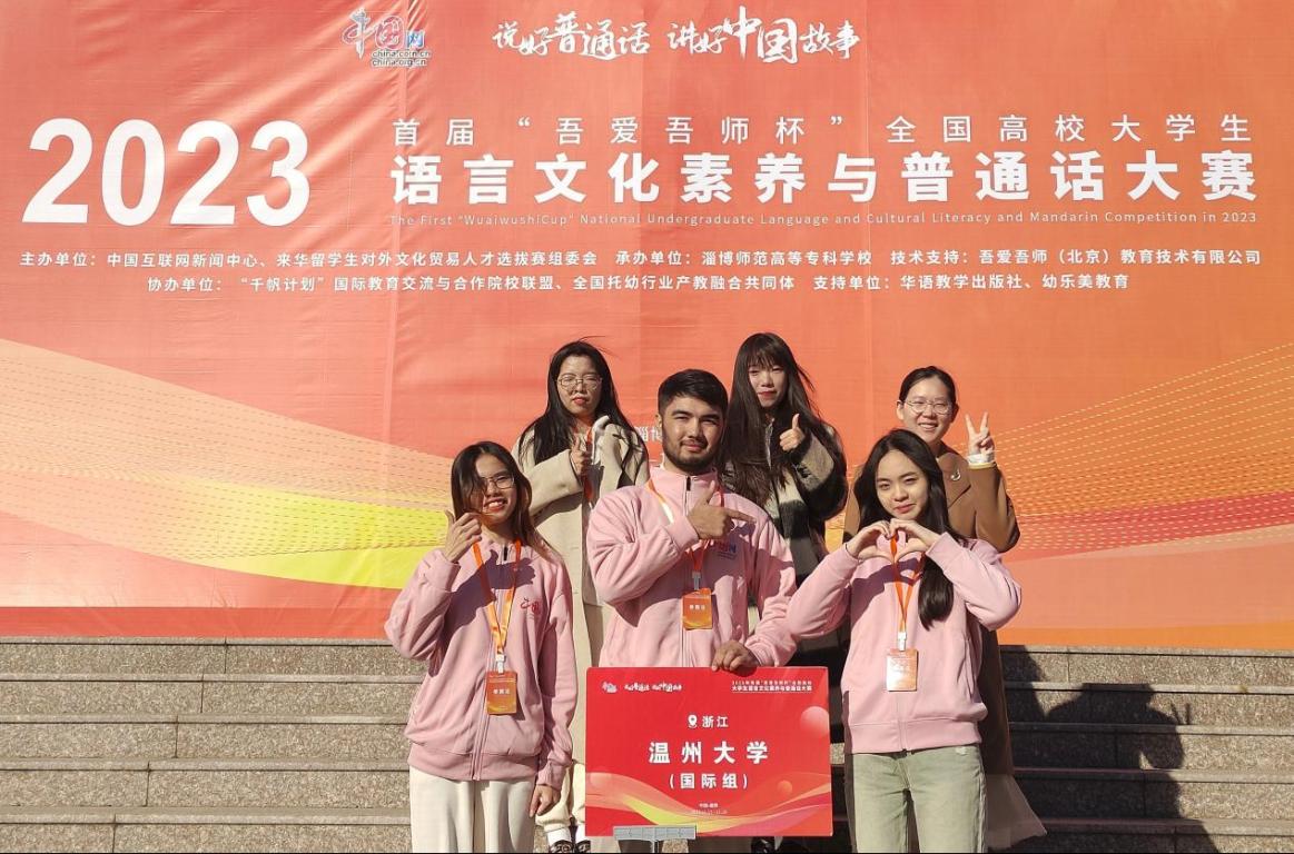 2023年首届“吾爱吾师杯”全国高校大学生语言文化素养与普通话大赛决赛于11月18日在山东淄博隆重举行。我校留学生SHERALI TUYCHIBOY 伟城、ĐẶNG THỊ HẰNG NGA 邓氏嫦娥、PHAM NHU QUYNH 范如琼3位学生为参赛选手,受邀参加本次比赛,经过与多所高校留学生的激烈角逐,最终喜获二等奖!
