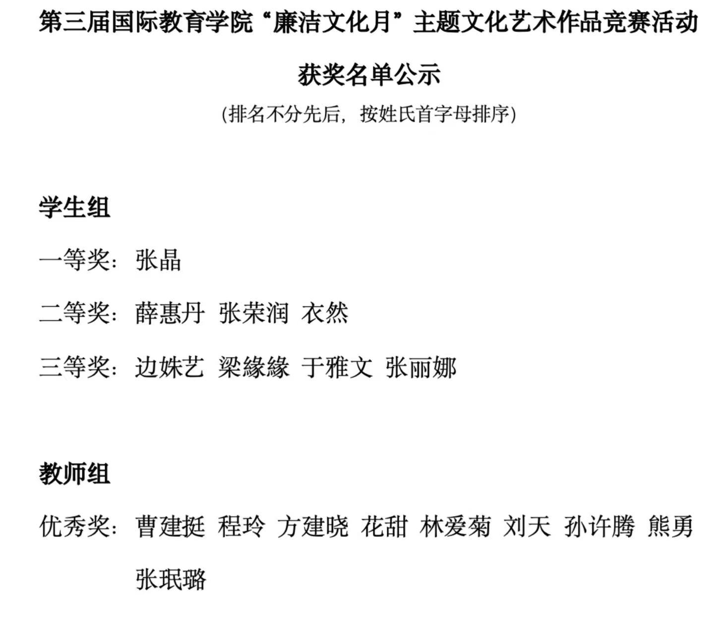 以廉养德,以廉润心。本次活动以文化作品为载体,通过作品创作净化心灵,进一步激发了学院师生更好地品廉、思廉、悟廉、践廉,时刻坚守廉洁初心,坚定理想信念,方能守得云开见月明!