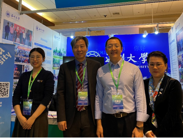 我校det365官网网站副院长熊勇、教师黄雅琳、池轶文先后参加主论坛、专项论坛、全体会议及同期举办的由汉考国际组织的“首届中外语言交流合作展”暨“中国教育国际交流展”。期间,中国教育国际交流协会郁云峰秘书长到访det365官网网站展位,对我校来华留学工作的努力与创新表示赞赏,对我校给予协会工作的支持表示感谢。