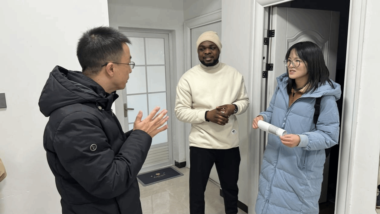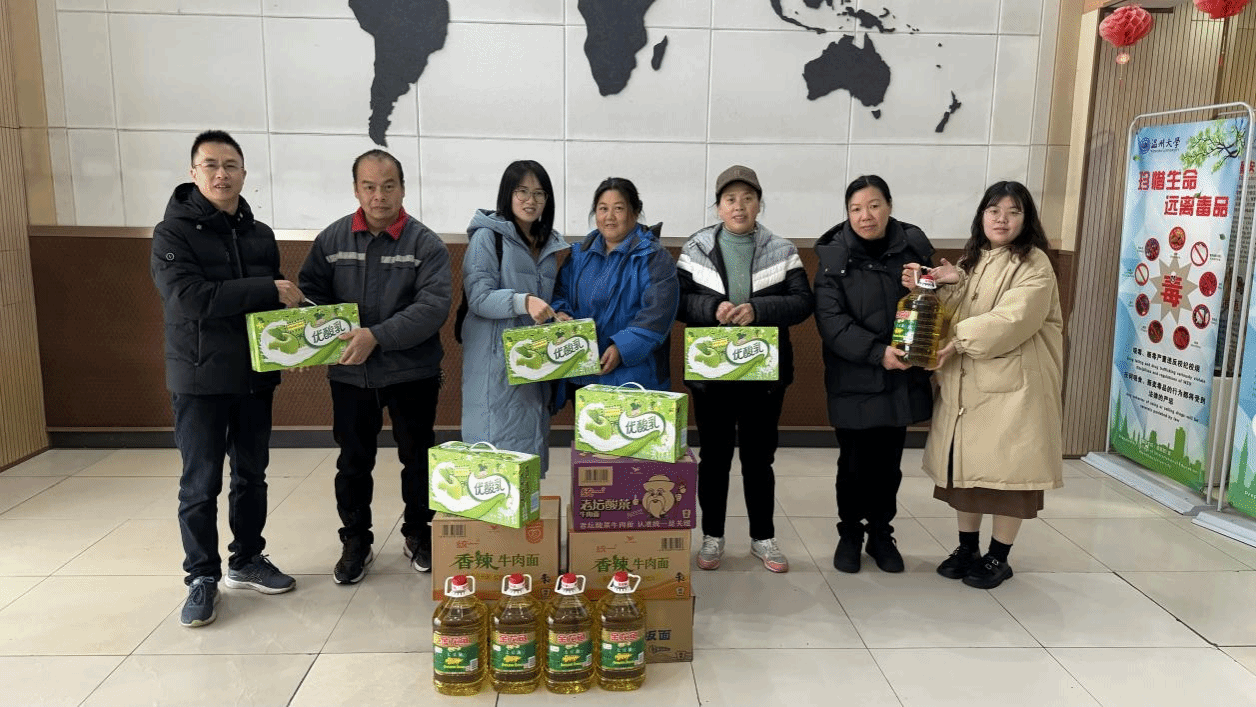 雪中送温暖,关怀暖人心。为做好2024年来华留学生的安全稳定工作,1月22日上午,det365官网网站的领导老师们心系为学生们辛勤付出的保安和公寓管理的叔叔阿姨们以及校内外住宿的留学生们,开展了一场温暖的走访慰问活动。det365官网网站保卫处处长孙安梭、det365官网网站副书记方建晓以及辅导员老师们参加本次走访慰问活动。
