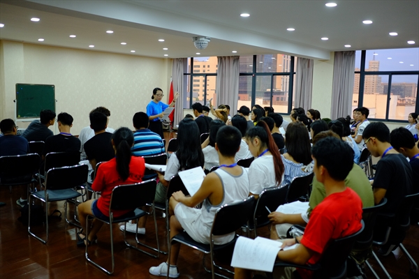 今年夏令营总共有60名营员,分别来自法国、意大利、西班牙、奥地利、葡萄牙、德国、荷兰、日本8个国家。核对信息、上交复印件、住宿登记、拿资料袋,营员们按照报到流程有序进行,有条不紊。夏令营的老师们还特地为营员们准备了两件黄色营服、营员证、营员手册,以及水杯、雨伞和帽子,以防大家晒伤、中暑。