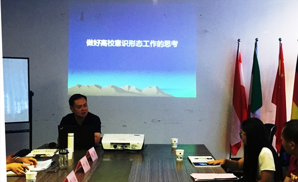 潘玉驹教授作以“做好高校意识形态工作的思考”为题的专题辅导。他围绕“高校为什么要加强意识形态建设?如何加强高校意识形态建设?”,从国内、国外、高校三个层面分析了党的十八大以来的意识形态工作,强调了要从“理想信念教育要深化,倾向性问题要旗帜鲜明,重要关口要严防死守,校园正能量要弘扬汇聚”四个维度加强高校意识形态建设,着力推动文化繁荣发展,善于发展榜样之力量,注重仪式文化的发展,占领意识形态领域阵地,筑牢思想政治防线。
