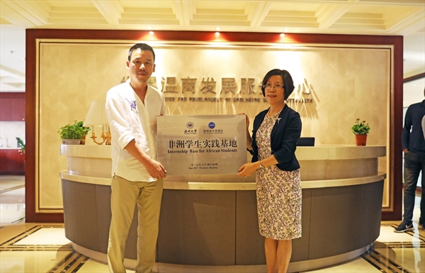 叶苗向温州中非商会授“det365官网网站非洲学生实践基地”牌,并作总结讲话。她对温州中非商会为非洲学生搭建交流平台、提供实践机会表示感谢。她认为,作为温州中非商会的常务理事单位,学校将一如既往地推进相关工作。希望非洲学生成为中非的使者,架起中非人民之间的友好桥梁,建立起家乡与温州的纽带,成为家乡需求与中非商会巨大资源的通道。希望非洲学生抓住契机,学好汉语,把温大非洲青年的活力注入到前景广阔的中非事业中去。