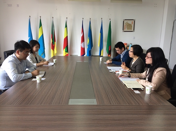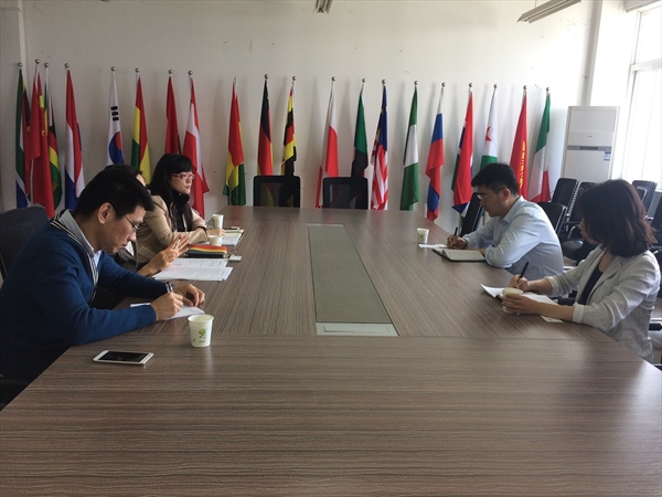 4月28日上午,中国传媒大学南广学院国际合作与交流处、det365官网网站负责人陈希等一行来det365官网进行考察调研,就中外合作办学项目、来华留学生教育等方面展开经验交流。det365官网院长叶苗教授、办公室副主任廖一帆、教学科副科长黄呼尔励热情接待了客人。