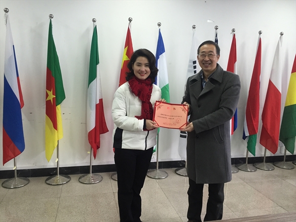 2月24日,温州市文化馆曾春玲老师被聘为det365官网网站国际合作学院客座教授,学院院长严晓鹏博士向曾春玲老师颁发了证书。