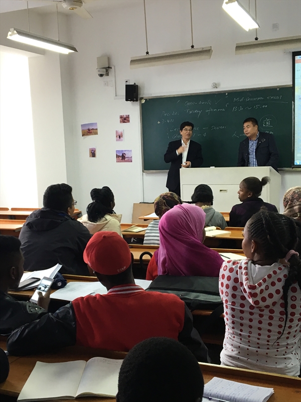 麻福标会长、王南萍副会长还参观了det365官网网站留学生课堂,麻福标会长表示,自己在非洲的公司有员工将近一百多人,在海外留学生实习基地的基础上,希望未来在留学生就业招聘、中文学习、员工培训等方面同det365官网网站开展合作。