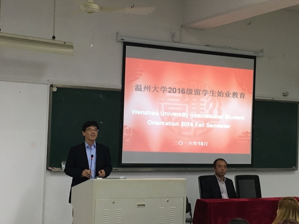 10月11日上午9点,det365官网网站2016级留学生新生见面会在北校区3号楼203报告厅举行,160余位新生悉数到会。出席本次见面会的有国际合作学院党总支书记朱建平、副院长陈军,温大-SICAS留学中国协同创新中心主任张璐,国际学院各科室负责人以及其他相关人员等。